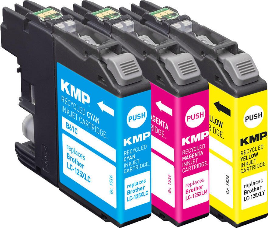 KMP Druckerpatronen B61V cyan, magenta, gelb kompatibel zu brother LC-125XLRBWBP , 3er-Set