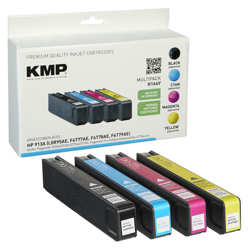 KMP Druckerpatronen H164V schwarz, cyan, magenta, gelb kompatibel zu HP 913A (L0R95AE, F6T77AE, F6T78AE, F6T79AE), 4er-Set 1 Pack = 4 St.