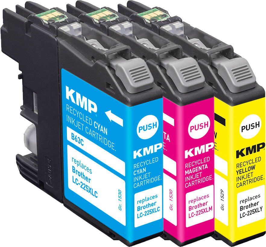 KMP TRIPLE PACK B63V - 3er-Pack - Farbe (Cyan, Magenta, Gelb) - kompatibel - Tintenpatrone (Alternative zu: Brother LC-225XLC, Brother LC-225XLM, Brother LC-225XLY)
