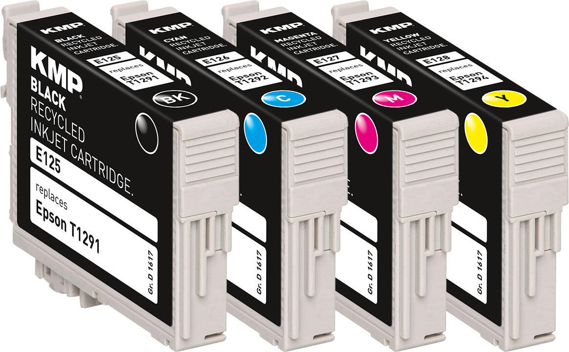 KMP Druckerpatronen E125V schwarz, cyan, magenta, gelb kompatibel zu EPSON T1295L, 4er-Set