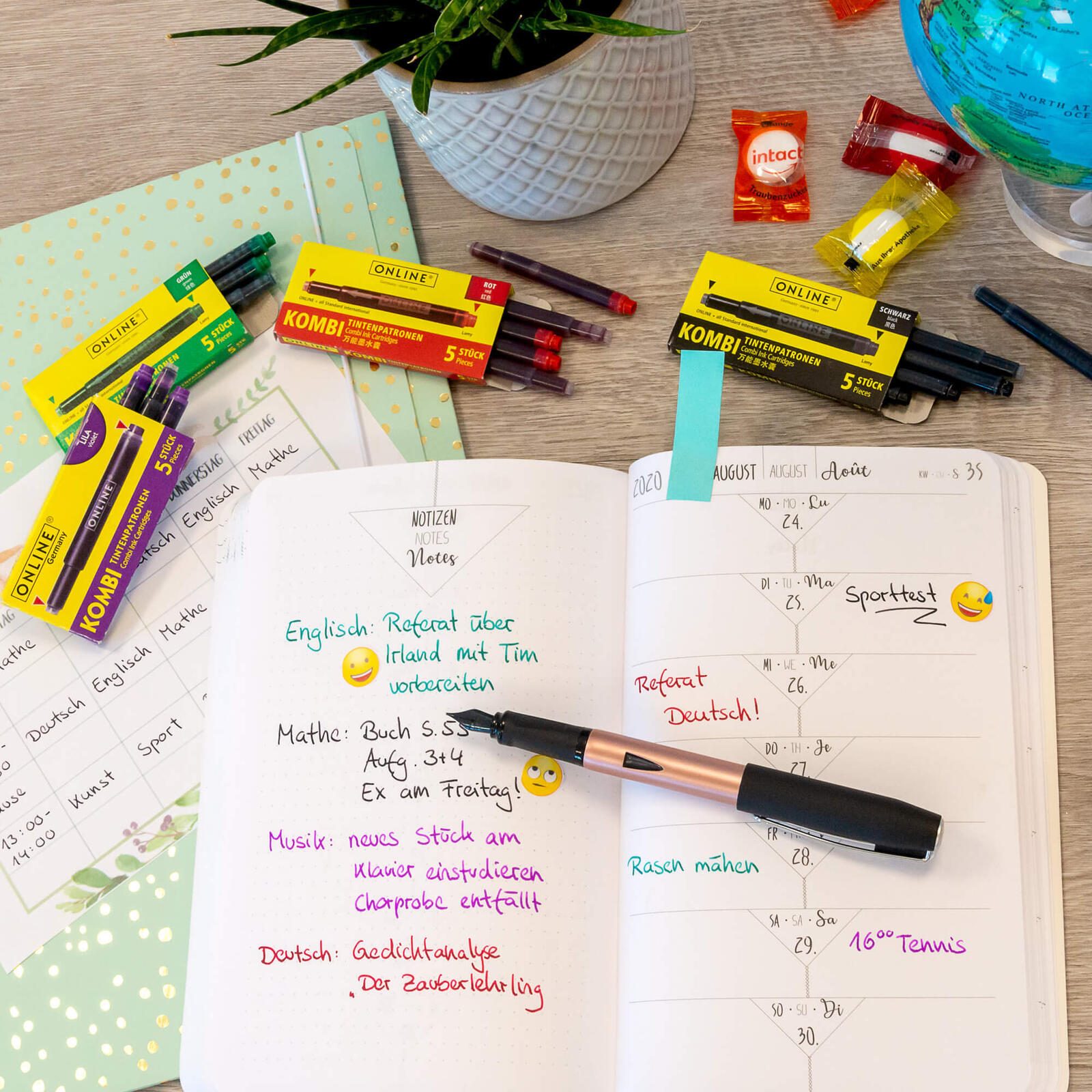 Die hohe Farbintensität und die gleichmäßige Tintenabgabe garantieren, dass deine Schriftzüge klar und lebendig erscheinen. Die ONLINE® Tintenpatronen sind nicht nur praktisch, sondern auch eine stilvolle Ergänzung für jeden Schreibtisch. Die einfache Handhabung und das schnelle Austauschen der Patronen machen sie zu einer idealen Wahl für Schüler, Studenten und Berufstätige.