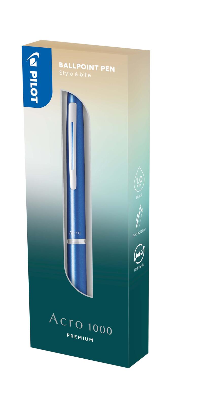 Der PILOT Acro 1000 Kugelschreiber in Schwarz vereint funktionales Design mit herausragender Schreibqualität. Mit einer Strichstärke von 0.4 mm bietet er präzise Linienführung, die sich ideal für detaillierte Notizen und Zeichnungen eignet. Dieser Druckkugelschreiber ist nicht nur ein praktisches Schreibwerkzeug, sondern auch ein stilvolles Accessoire, das in jedem Büro oder auf jedem Schreibtisch einen guten Eindruck hinterlässt. Die dokumentenechte Tinte gewährleistet, dass deine wichtigen Unterlagen und Notizen auch über längere Zeit hinweg lesbar bleiben. Der Kugelschreiber ist mit einem Clip ausgestattet, der es dir ermöglicht, ihn bequem an Notizblöcken oder Taschen zu befestigen, sodass er immer griffbereit ist. Besonders hervorzuheben ist der Schwerpunkt im vorderen Gehäuseteil, der für eine ausgewogene Handhabung und ein angenehmes Schreibgefühl sorgt. Der PILOT Acro 1000 ist nachfüllbar, was nicht nur umweltfreundlich ist, sondern dir auch die Möglichkeit gibt, die hochwertige PILOT Acroball BRFV-10M Mine zu verwenden. Diese Mine sorgt für ein gleichmäßiges und flüssiges Schreibvergnügen. Die Schreibfarbe Schwarz ist perfekt für formelle Dokumente, kreative Projekte oder alltägliche Notizen. Mit seinem runden Griff liegt der Kugelschreiber angenehm in der Hand und ermöglicht stundenlanges Schreiben ohne Ermüdungserscheinungen. Der PILOT Acro 1000 vereint Qualität, Komfort und Stil und ist somit die ideale Wahl für alle, die Wert auf ein hervorragendes Schreibgerät legen.Technische Daten
