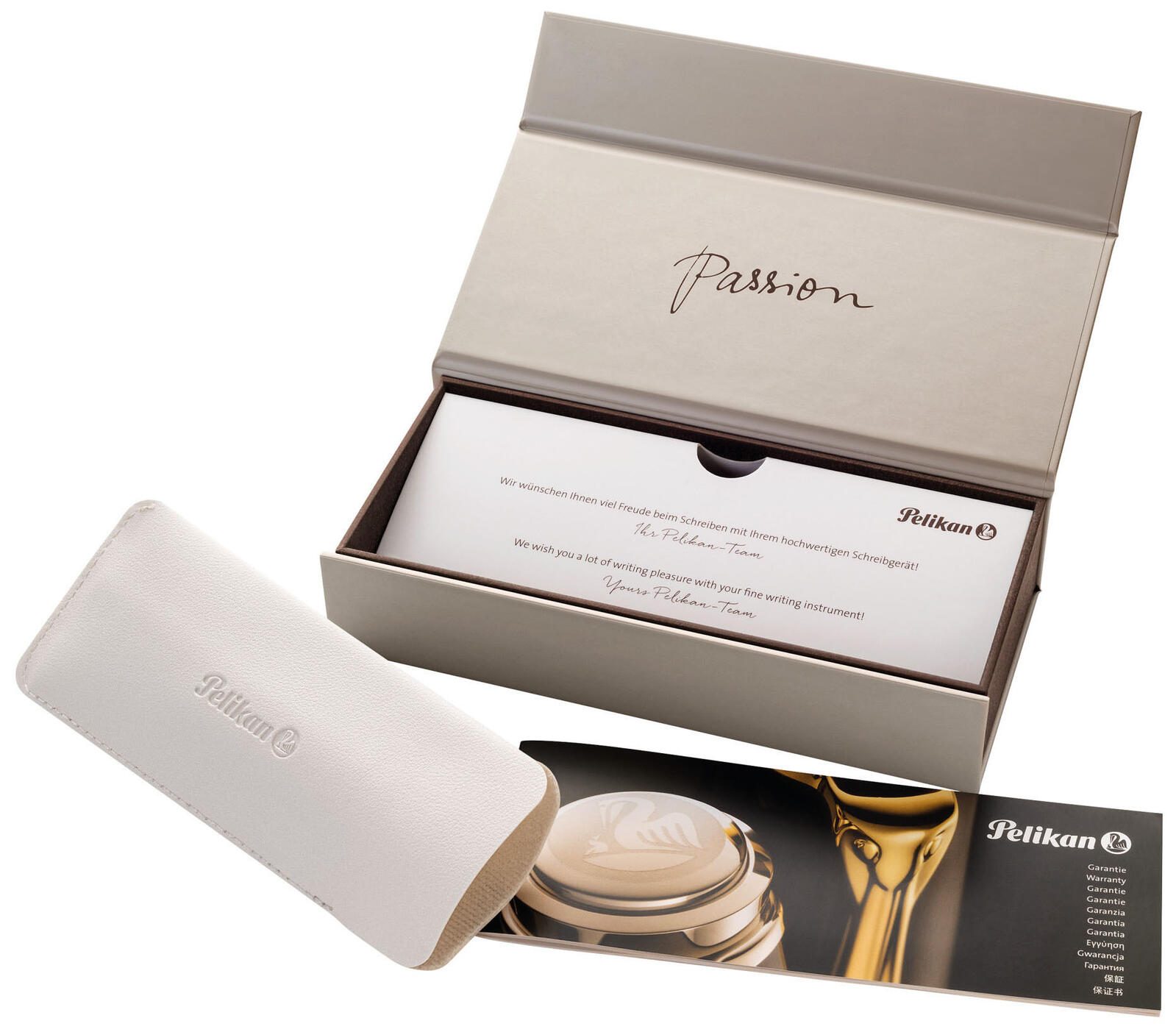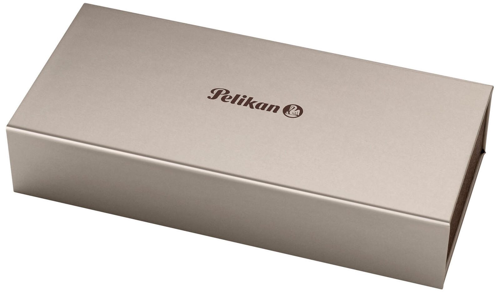 Der Kugelschreiber verfügt über eine nachfüllbare Pelikan Großraummine 337 in Schwarz, was eine langfristige Nutzung gewährleistet. Das klassische Design mit dem runden Griff aus Metall sorgt für eine angenehme Haptik und ein stilvolles Erscheinungsbild.