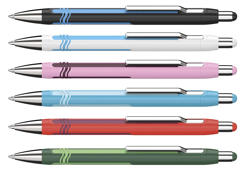 Zu den besonderen Merkmalen zählen die umlaufenden Dreifachlinien aus Weichkunststoff im Griffbereich, die nicht nur ansprechend aussehen, sondern auch für eine angenehme und rutschfeste Handhabung sorgen. Die gummierte Griffart bietet zusätzlichen Komfort bei längeren Schreibaufgaben und verleiht dem Kugelschreiber eine hochwertige Haptik.