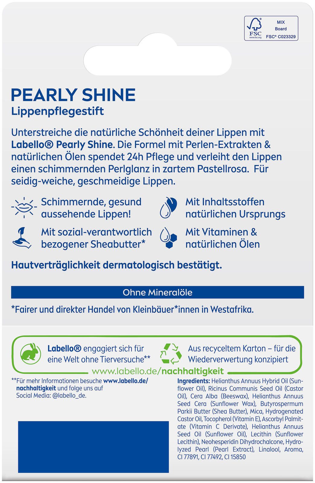- mit Sheabutter, Vitaminen, natürlichen Ölen und Perlen-Extrakten, schützt vor dem Austrocknen - ohne Mineralöle, verleiht einen schimmernden Perlglanz in zartem Pastellrosa, ohne Paraffine