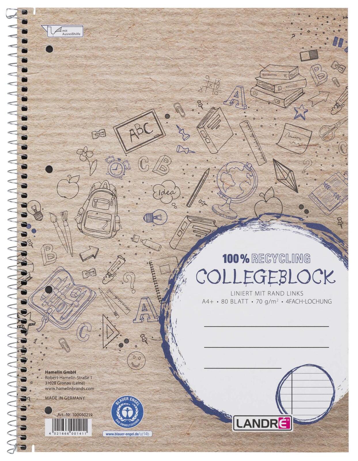LANDRÉ® Collegeblock Recycling liniert DIN A4 Rand links