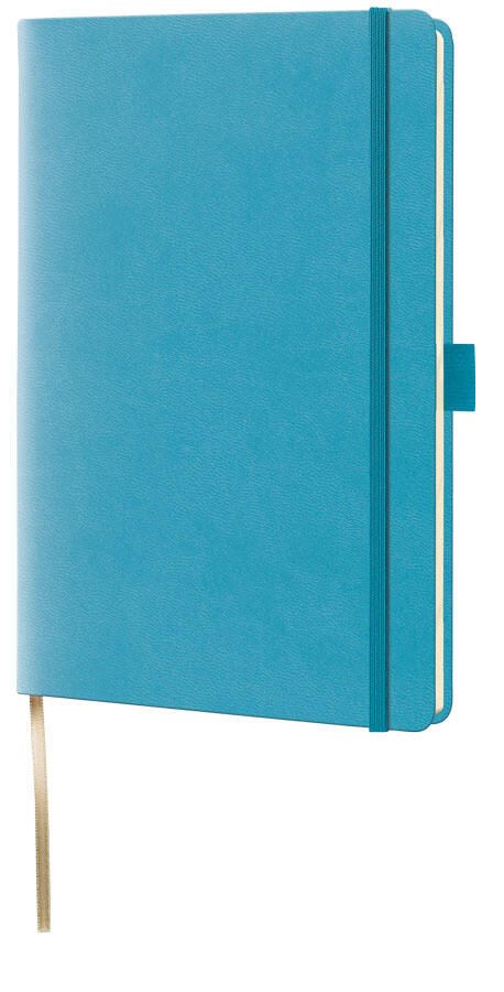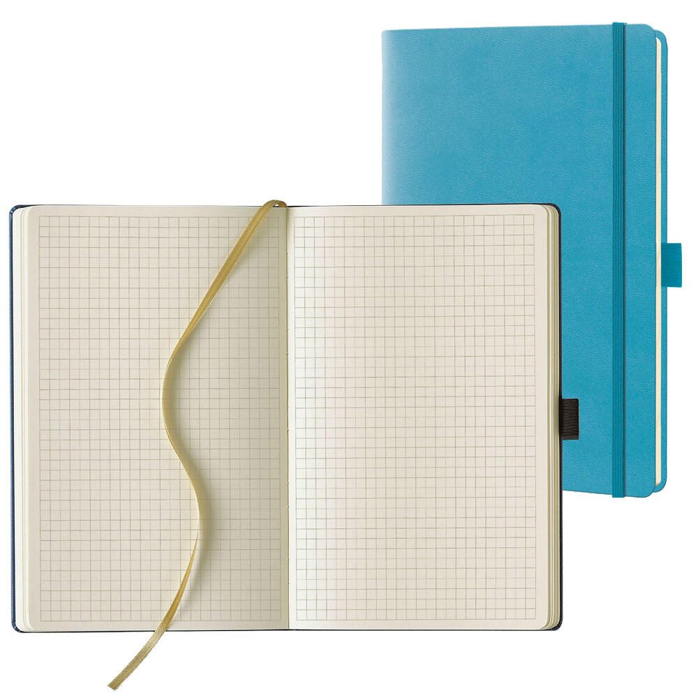 Die Ausführung der Lineatur ist kariert, was ideal ist, um deine Gedanken geordnet festzuhalten. Mit einem festen Verschluss durch den Gummizug bleibt das Notizbuch sicher geschlossen und schützt deine Aufzeichnungen vor dem Herausfallen. Die cremefarbene Papierfarbe bietet einen angenehmen Kontrast zum türkisblauen Cover und sorgt für eine optimale Lesbarkeit deiner Einträge.