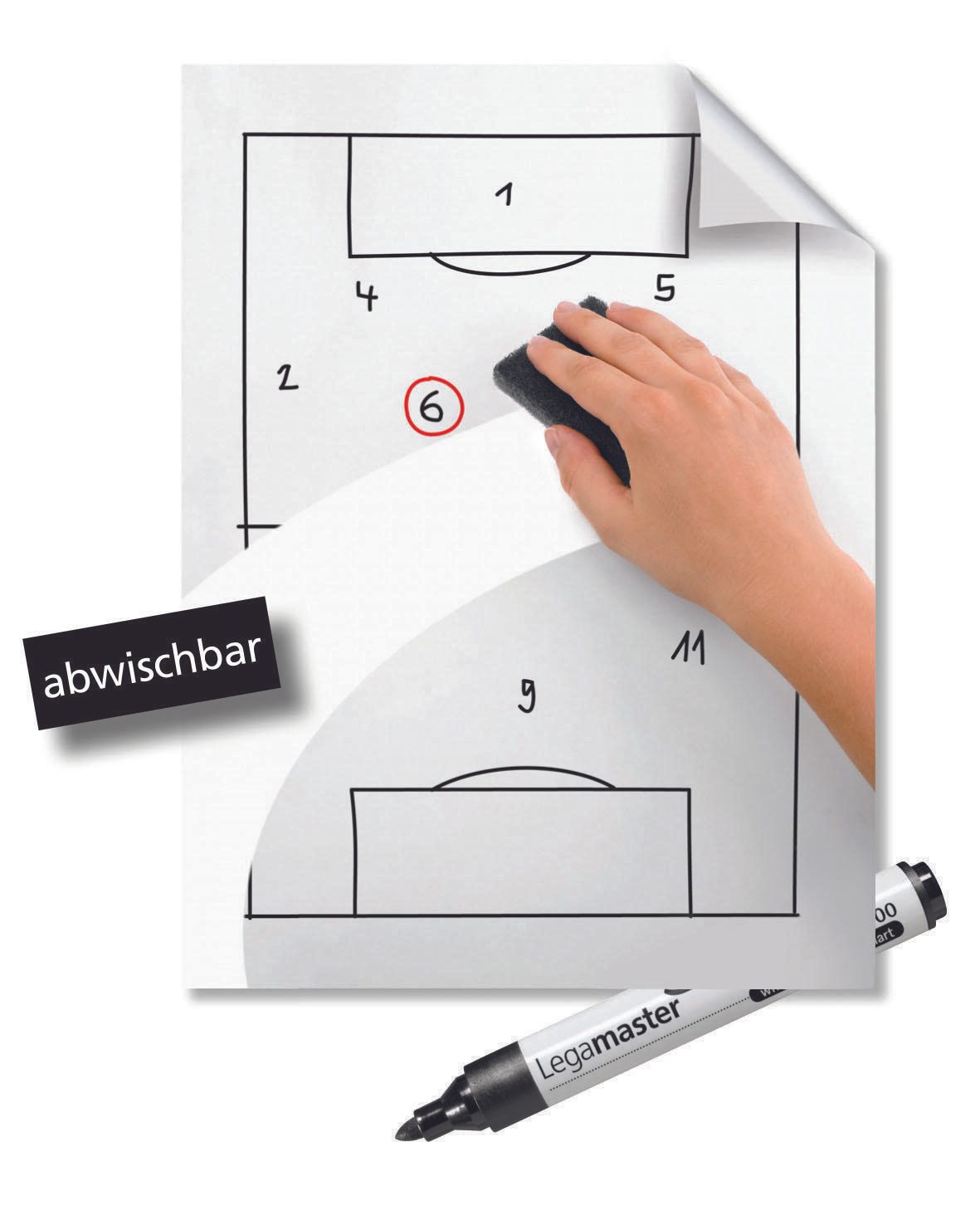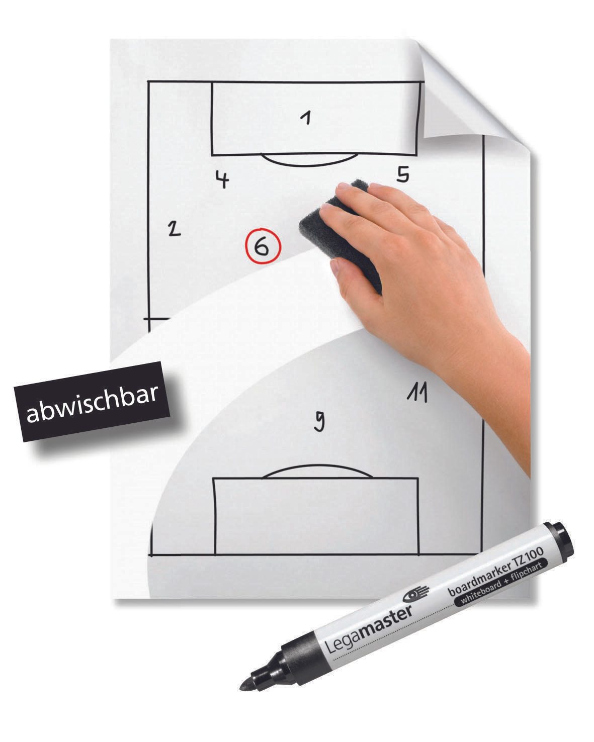 Die Legamaster Flipchart-Folie 60,0 x 80,0 cm ist die perfekte Lösung für kreative Präsentationen und effektive Meetings. Diese hochwertige, weiße Folie überzeugt durch ihre mikroperforierte Struktur, die es dir ermöglicht, die Blätter einfach und ohne Rückstände zu entfernen. Dank der selbsthaftenden und wieder ablösbaren Eigenschaften haftet die Folie sicher auf fast allen glatten Oberflächen, was sie äußerst vielseitig einsetzbar macht. Die Folie besteht aus elektrostatischem Material, das dafür sorgt, dass sie stabil an Ort und Stelle bleibt, ohne zusätzliche Klebstoffe oder Befestigungen zu benötigen. Mit den Maßen von 60,0 x 80,0 cm bietet sie ausreichend Platz, um deine Ideen und Konzepte klar und übersichtlich darzustellen. Jedes Paket enthält 25 Blatt, sodass du genügend Material für mehrere Präsentationen hast. Die Legamaster Flipchart-Folie ist blanko und eignet sich hervorragend zum Beschreiben mit trocken abwischbaren Boardmarkern sowie Permanentmarkern. Dies ermöglicht dir eine flexible Nutzung, egal ob du skizzierst, Notizen machst oder wichtige Informationen festhältst. Die Magic-Chart Whiteboard-Serie von Legamaster steht für Qualität und Benutzerfreundlichkeit, sodass du dich ganz auf deine Präsentation konzentrieren kannst. Erlebe die Vorteile der Legamaster Flipchart-Folie und bringe deine Ideen auf eine neue Ebene. Sie ist nicht nur praktisch, sondern auch ein unverzichtbares Hilfsmittel für jeden, der regelmäßig Präsentationen hält oder Workshops leitet.Technische Daten