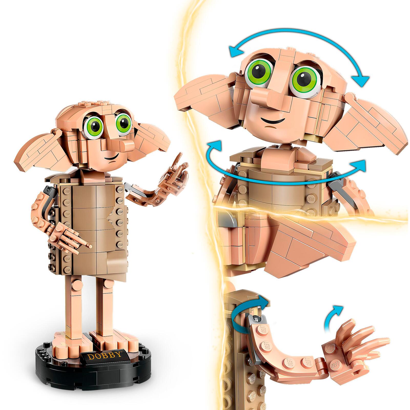 Kopf, Ohren, Arme und Finger lassen sich bewegen: Neige Dobbys Kopf und bewege seine Finger, damit er Zubehör aus LEGO Steinen halten kann