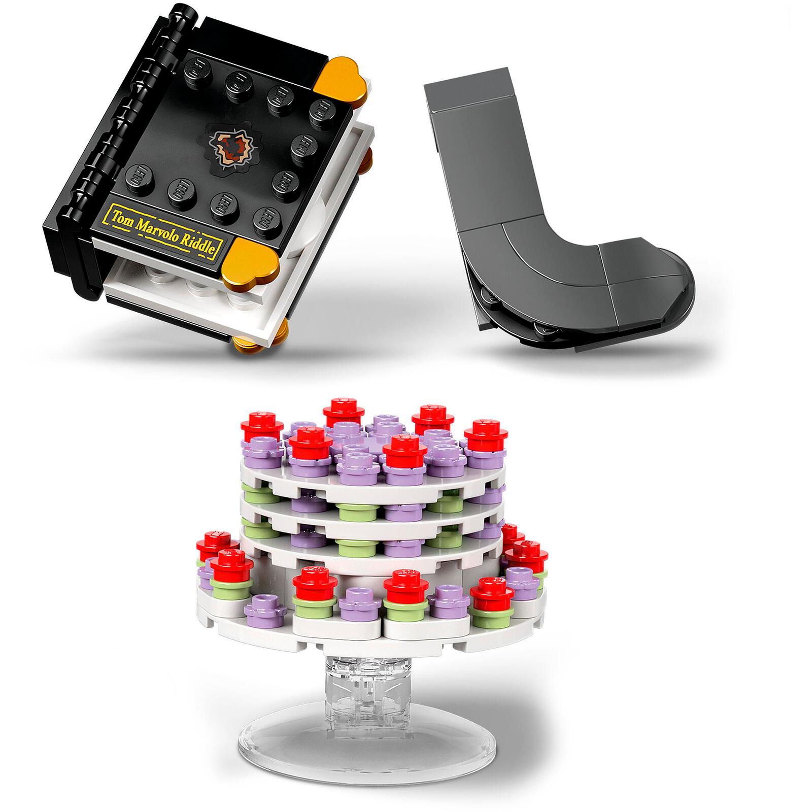 Legendäres Zubehör: Wenn dein Kind Tante Petunias „schwebende“ Torte und ein detailgetreues Modell von Tom Riddles Tagebuch mit Harry Potters Socke baut, kann es sich klassische Filmszenen in Erinnerung rufen
