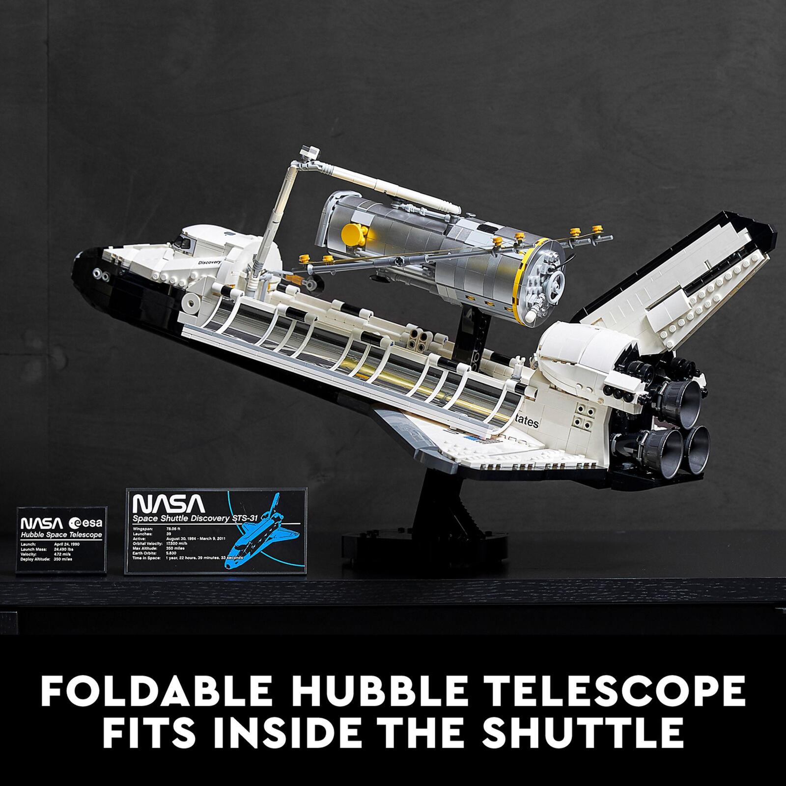 Das fesselnde Bauprojekt wird dich viele Stunden beschäftigen, während du das Spaceshuttle „Discovery“ und das Hubble-Weltraumteleskop aus der NASA-Weltraummission STS-31 im Jahr 1990 nachbaust.