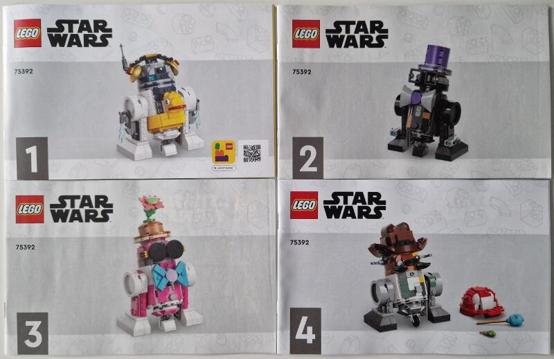 Kreatives Gemeinschaftsprojekt: Zu jedem der 4 LEGO® Droiden und deren Zubehör sind in der Box separate Bauanleitungen enthalten, damit mehrere Personen gleichzeitig bauen können