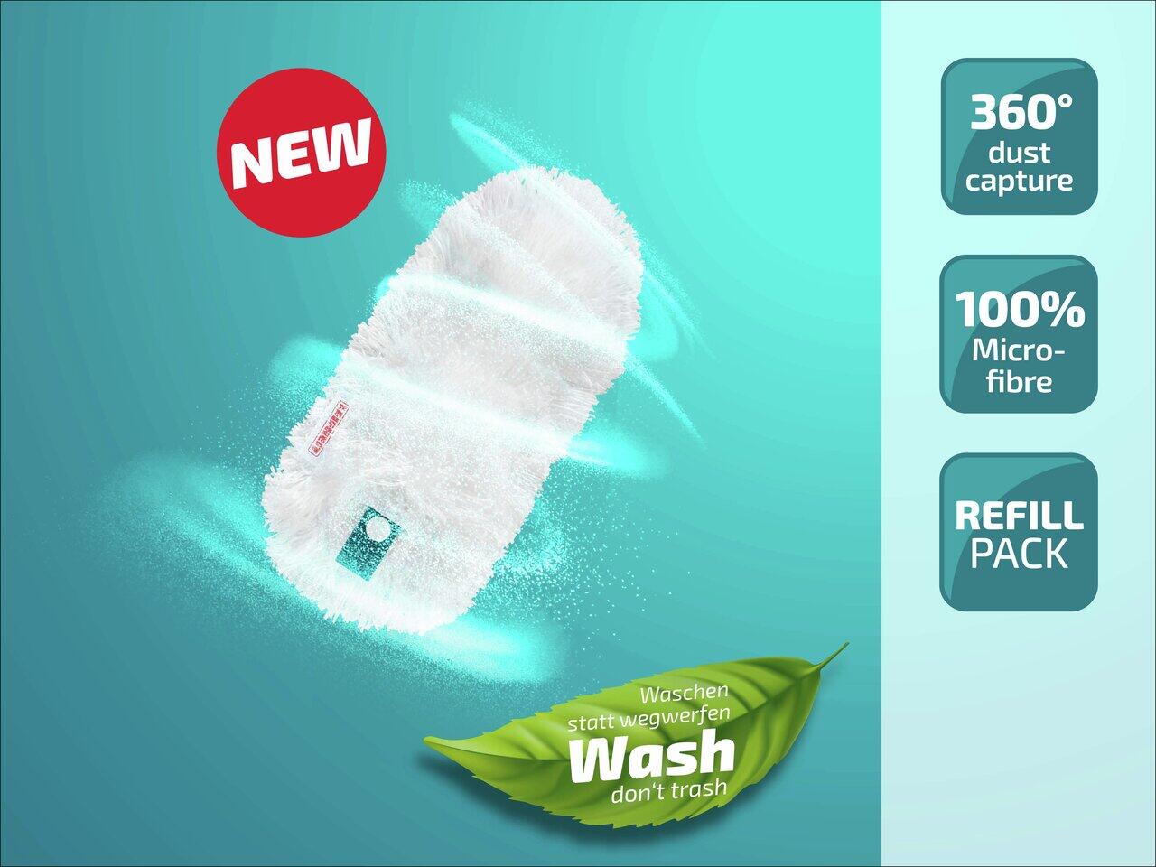 Ein besonderes Merkmal dieses Staubwedel-Bezugs ist seine Waschbarkeit bei bis zu 40 °C. Dadurch kann der Bezug mehrfach verwendet werden, ohne an Reinigungsleistung zu verlieren. Laut Herstellerangaben ist der Bezug sogar bis zu 50 Mal waschbar, was ihn besonders langlebig und nachhaltig macht. Zudem lässt sich der Bezug einfach wechseln, was die Handhabung erleichtert.