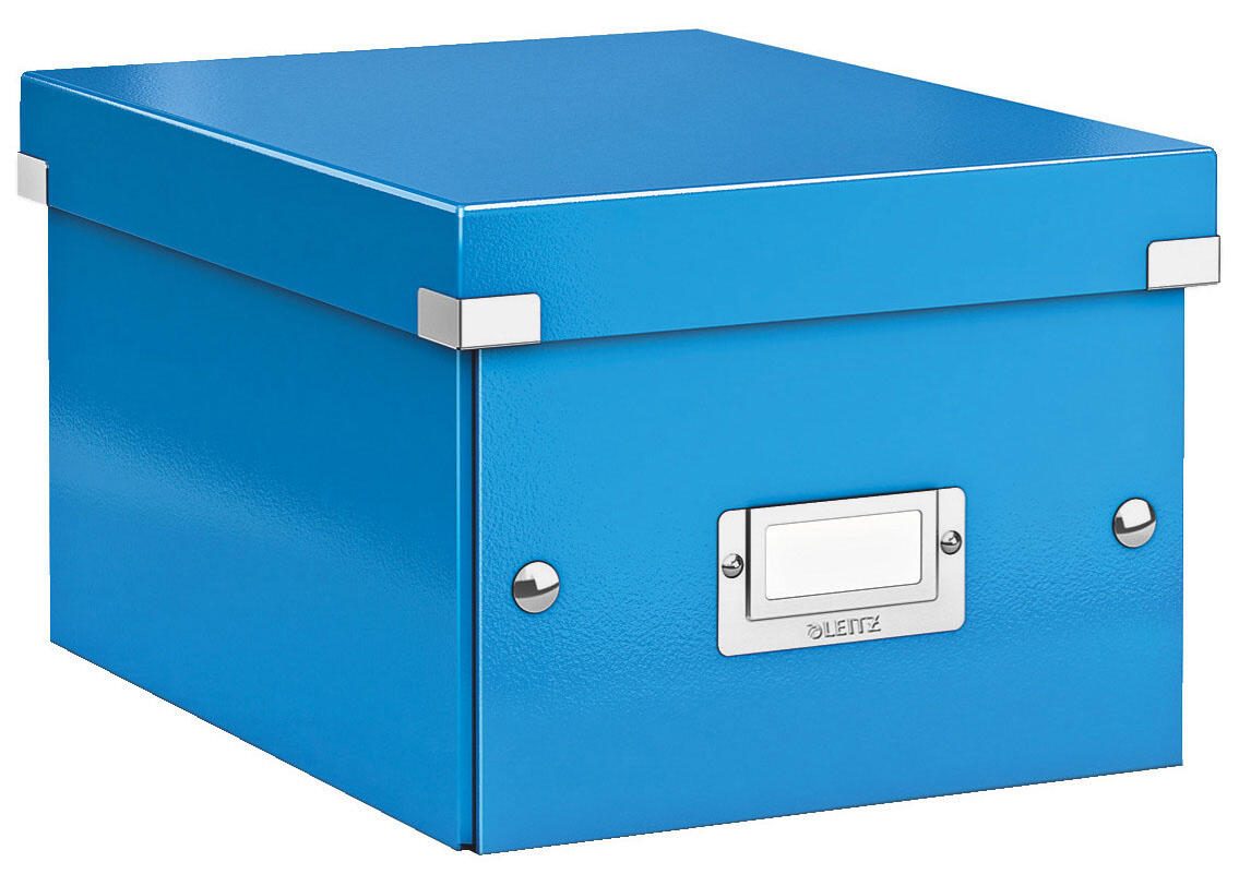 Die LEITZ Aufbewahrungsbox Click & Store ist die ideale Lösung für die ordentliche Aufbewahrung deiner Unterlagen und persönlichen Gegenstände. Mit einem großzügigen Fassungsvermögen von 7,4 Litern bietet diese Box ausreichend Platz für DIN A5 quer Formate, Fotos und vieles mehr. Ihre Außenmaße von 21,6 x 28,2 x 16,0 cm machen sie zu einem praktischen Begleiter im Büro, im Wohnzimmer oder im Kinderzimmer. Die stilvolle blaue Farbe verleiht der Aufbewahrungsbox nicht nur ein modernes Aussehen, sondern sorgt auch dafür, dass sie sich harmonisch in jede Umgebung einfügt. Hergestellt aus robustem Karton, ist die Box sowohl leicht als auch langlebig. Der integrierte Deckel schützt den Inhalt vor Staub und sorgt dafür, dass alles sicher verstaut ist. Ein weiteres Highlight ist die Stapelbarkeit der Box, die es dir ermöglicht, mehrere Einheiten platzsparend übereinander zu lagern. So bleibt dein Raum aufgeräumt und du hast jederzeit Zugriff auf deine wichtigen Unterlagen. Der Verzicht auf Grifflöcher macht die Box besonders elegant und sorgt für eine durchgehende, ansprechende Optik. Die LEITZ Aufbewahrungsbox Click & Store ist nicht nur funktional, sondern auch ein stilvolles Accessoire für dein Zuhause oder Büro. Sie ist die perfekte Wahl für alle, die Wert auf Ordnung und Design legen. Ob für die Aufbewahrung von Dokumenten, Erinnerungsfotos oder anderen wichtigen Gegenständen, diese Box bietet dir die Flexibilität und den Platz, den du benötigst.Technische Daten