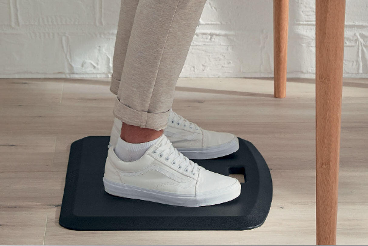 Gefertigt aus hochwertigem Schaumstoff, besitzt die Matte sowohl auf der Oberfläche als auch auf der Unterseite dieses Material. Dadurch ist sie rutschfest und sorgt für sicheren Stand, ohne auf glatten Böden zu verrutschen. Die Abmessungen von 45,7 x 55,8 cm bieten ausreichend Fläche, um die Füße bequem zu positionieren. Zudem ist die Matte für Holzböden geeignet und kann bedenkenlos auf Fußbodenheizungen verwendet werden.
