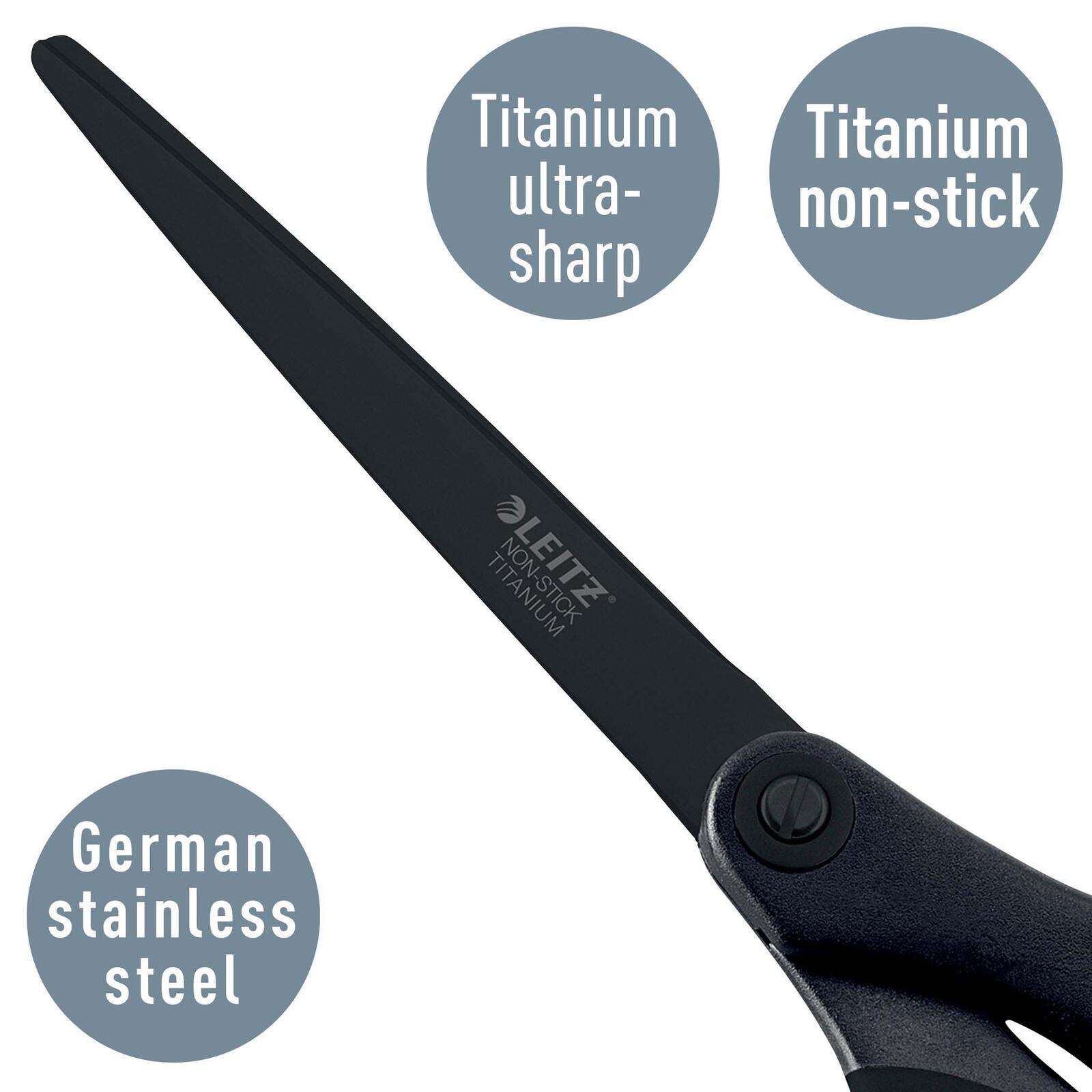 Die LEITZ Antihaftschere Titanium ist vielseitig einsetzbar und eignet sich zum Schneiden von Papier, klebenden Materialien oder Stoffen. Sie ist als Büroschere konzipiert und erfüllt die Anforderungen sowohl im privaten als auch im gewerblichen Bereich. Hergestellt wird die Schere von LEITZ ACCO Brands GmbH & Co KG mit Sitz in Stuttgart, Deutschland.