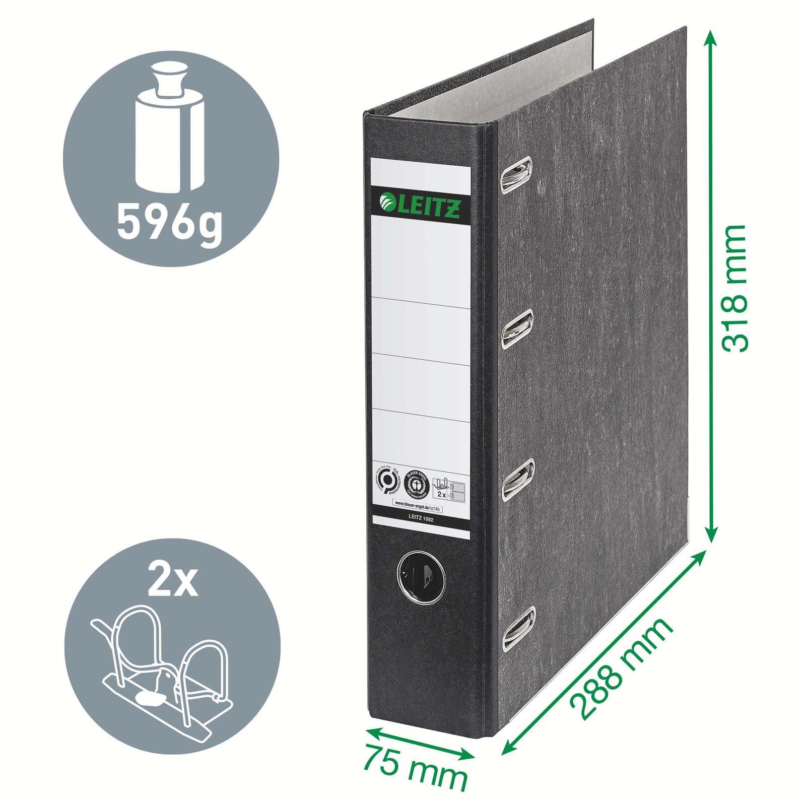LEITZ Doppelordner 7.5 cm 2x A5 quer Karton schwarz