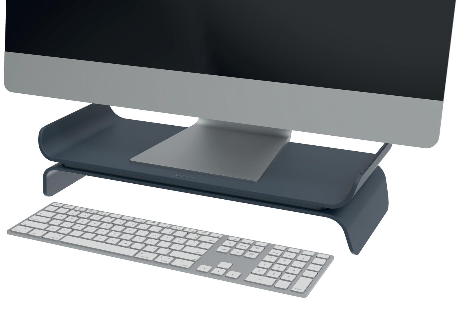 Mit den Abmessungen von 20,9 cm in der Breite, 43,8 cm in der Tiefe und 11,2 cm in der Höhe ist der LEITZ Monitorständer Ergo geeignet für Monitore bis zu 68,6 cm (27 Zoll). Er fördert eine gesunde Körperhaltung, indem er den Bildschirm auf die optimale Augenhöhe anhebt. Dies trägt dazu bei, Nacken- und Schulterschmerzen zu reduzieren, die häufig durch falsches Sitzen und ungenügende Bildschirmhöhe entstehen.