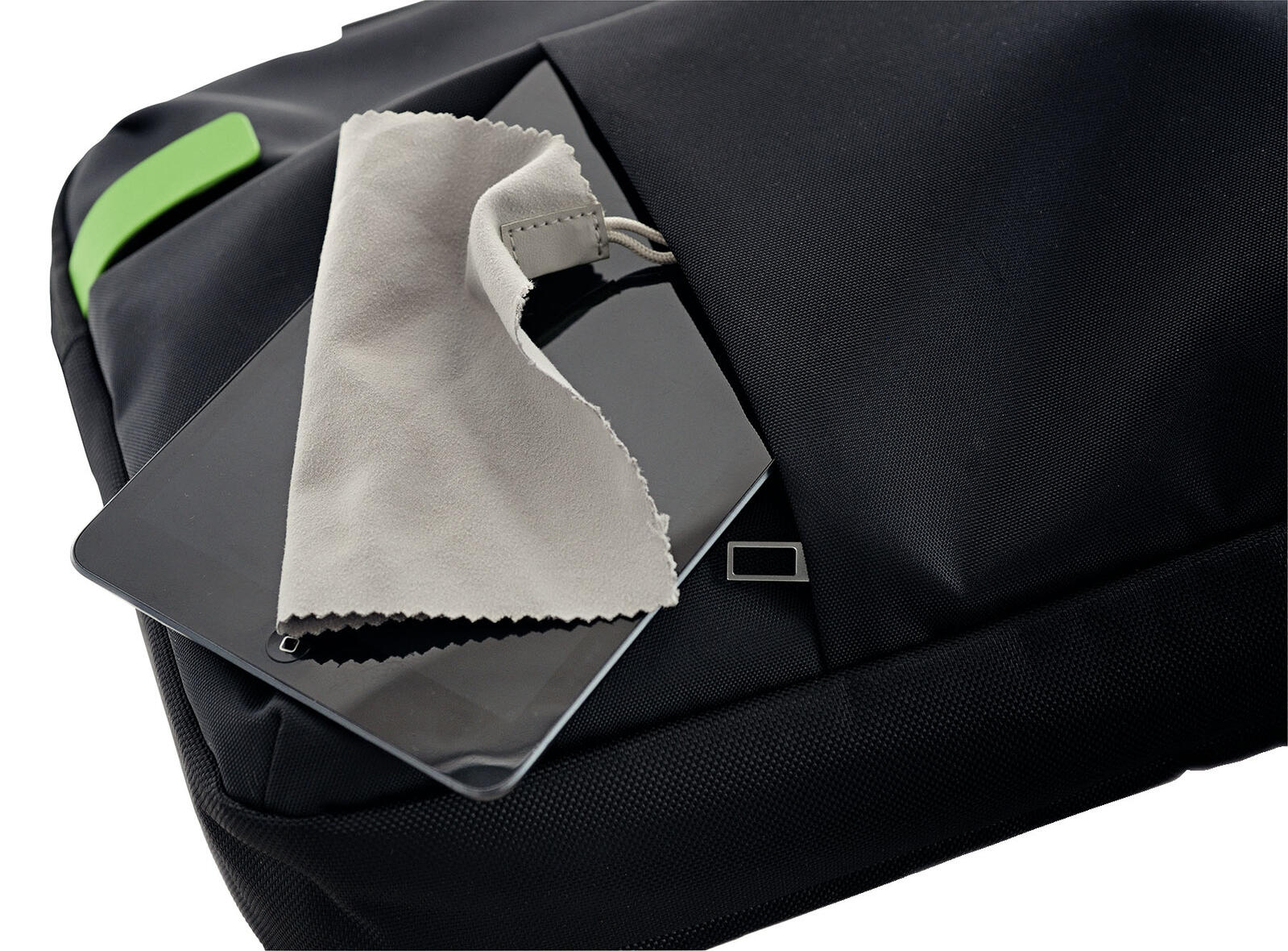 Die LEITZ Laptoptasche Complete 15.6" Smart Traveller ist die ideale Begleiterin für alle, die Wert auf Funktionalität und Stil legen. Mit der Fähigkeit, Notebooks bis zu einer Größe von 39,6 cm (15,6 Zoll) aufzunehmen, bietet diese Tasche ausreichend Platz für dein Gerät, während sie gleichzeitig einen eleganten und modernen Look bewahrt. Die durchdachte Inneneinteilung umfasst insgesamt 18 Fächer, darunter zwei Hauptfächer, ein kleines Frontfach und ein separates herausnehmbares Etui. Zusätzlich gibt es ein Netzfach, ein Handyfach sowie Stift- und Visitenkartenfächer, die dir helfen, deine Utensilien ordentlich zu organisieren. Besonders hervorzuheben ist das gepolsterte Tabletfach, das mit weichem Fleece ausgestattet ist und deinem Tablet optimalen Schutz bietet. Hergestellt aus strapazierfähigem Polyester, ist die Laptoptasche nicht nur robust, sondern auch leicht zu reinigen. Mit Außenmaßen von 41,0 x 10,0 x 31,0 cm ist sie kompakt genug, um sie überallhin mitzunehmen, sei es ins Büro, zur Uni oder auf Reisen. Die schlichte schwarze Farbe verleiht der Tasche eine zeitlose Eleganz und macht sie zu einem vielseitigen Accessoire, das zu jedem Outfit passt. Die LEITZ Laptoptasche Complete 15.6" Smart Traveller ist mehr als nur eine Tasche; sie ist ein praktisches und stilvolles Organisationswerkzeug, das dir hilft, deinen Alltag effizient zu gestalten. Mit dieser Tasche bist du bestens ausgestattet, um deine elektronischen Geräte und persönlichen Gegenstände sicher und geordnet zu transportieren.Technische Daten