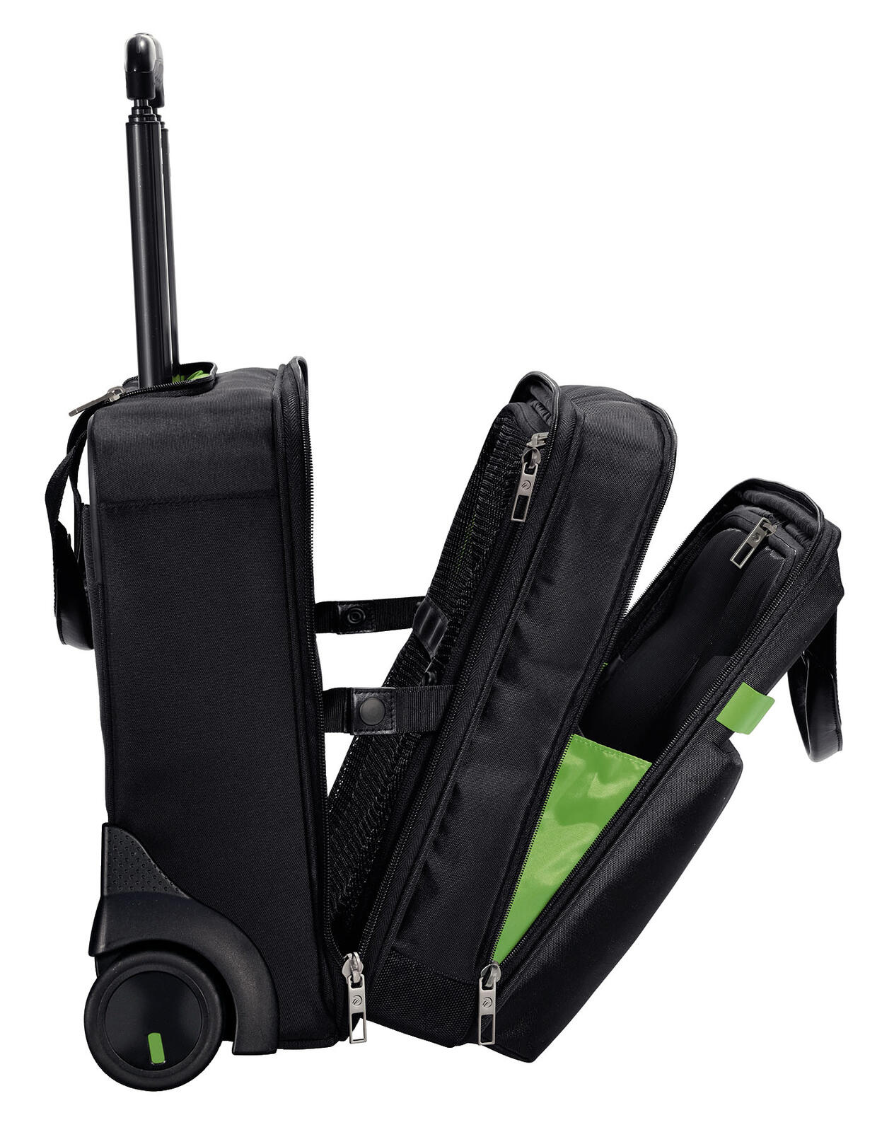 Der LEITZ Laptop-Trolley Complete Smart Traveller in elegantem Schwarz ist die ideale Lösung für alle, die viel unterwegs sind und ihre technischen Geräte sicher und stilvoll transportieren möchten. Mit seinen Außenmaßen von 42,0 x 20,0 x 37,0 cm bietet dieser Trolley ausreichend Platz für Notebooks bis zu 39,6 cm (15,6 Zoll) und ist zudem für Tablets bis 25,4 cm (10 Zoll) geeignet. Die durchdachte Inneneinteilung umfasst insgesamt 19 Fächer, darunter zwei geräumige Hauptfächer, ein kleines Frontfach und ein geräumiges Netzfach für Kabel und Netzgerät. Besonders hervorzuheben ist das gepolsterte Ultrabookfach, das mit weichem Fleece ausgestattet ist und so optimalen Schutz für dein Gerät bietet. Der Laptop-Trolley besteht aus robustem Polyester, das nicht nur langlebig, sondern auch pflegeleicht ist. Die praktische Ausstattung mit einem Schlüsselhalter sorgt dafür, dass deine Wertsachen stets sicher und griffbereit sind. Mit dem LEITZ Laptop-Trolley Complete Smart Traveller bist du bestens gerüstet, um deine technischen Begleiter sicher zu transportieren. Egal, ob im Büro, auf Reisen oder im Alltag – dieser Trolley vereint Funktionalität und ein modernes Design, das sich nahtlos in deinen Lifestyle einfügt.Technische Daten
