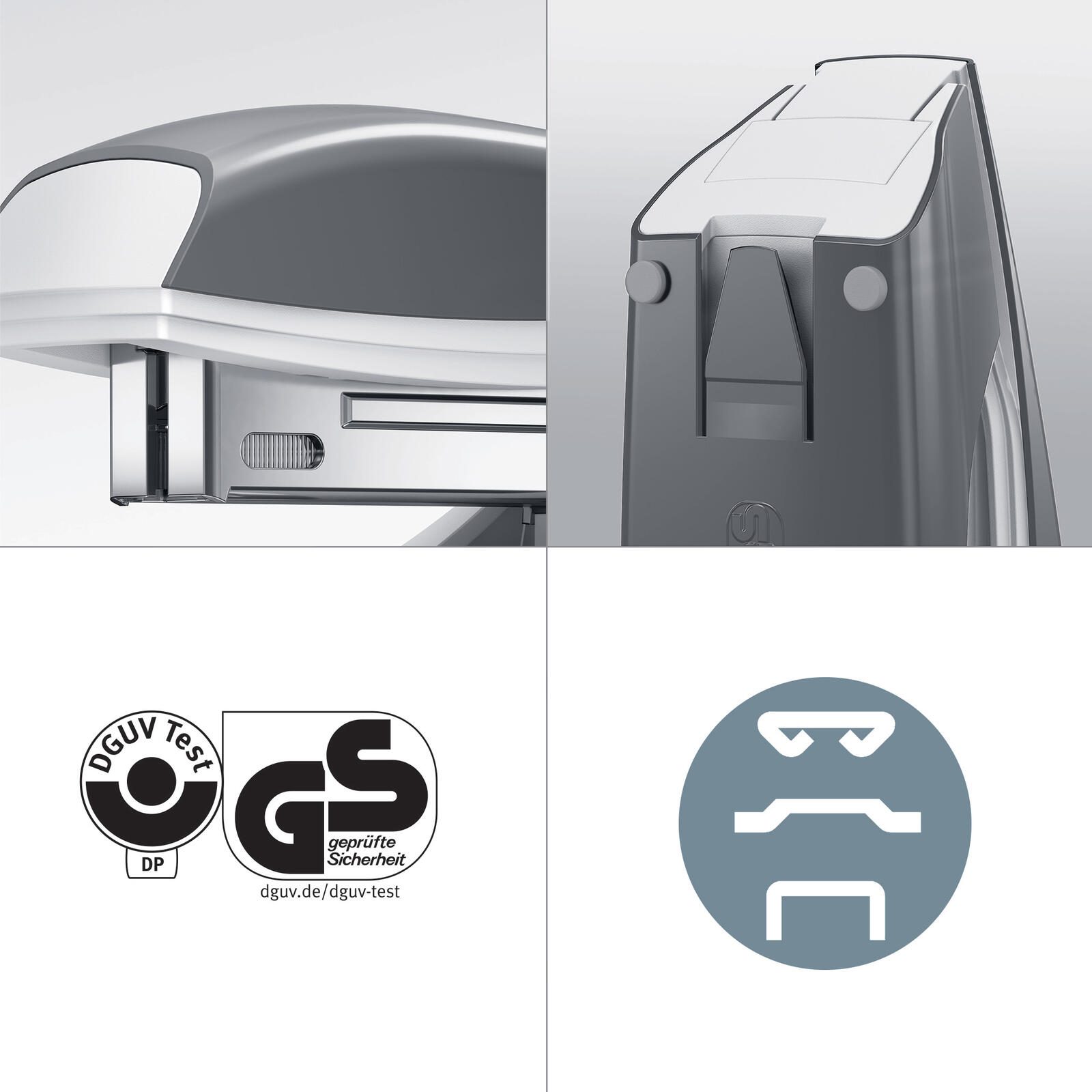 - Fassungsvermögen: 100 Heftklammern 24/6 oder 140 Heftklammern 26/6