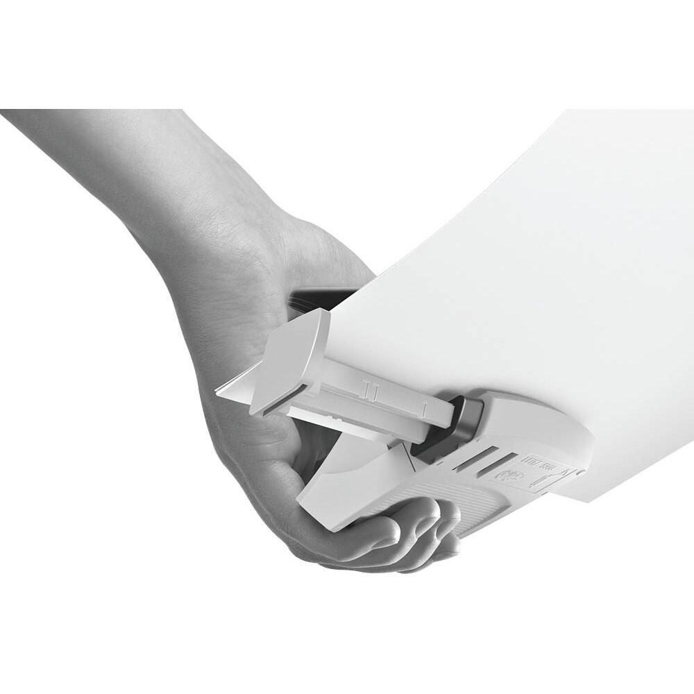 - Ergonomische Griffmulde und schärfere Lochstempel verringern den Kraftaufwand