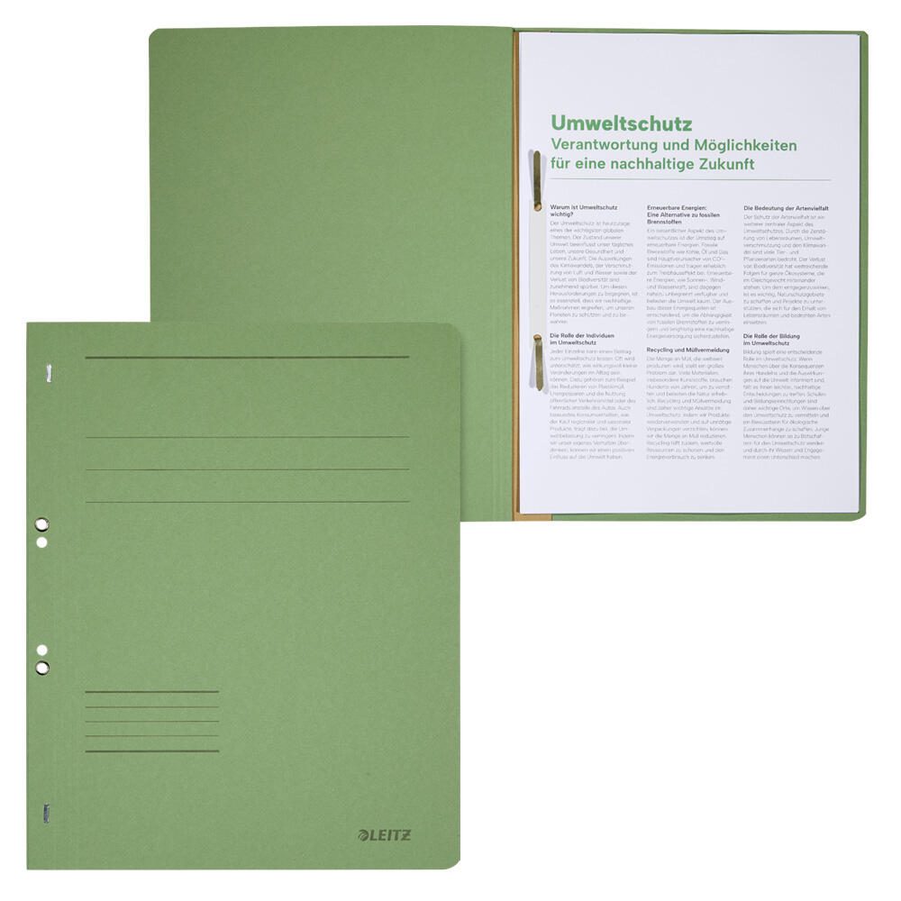 Der LEITZ Ösenhefter in DIN A4 ist die ideale Lösung für alle, die eine zuverlässige und praktische Möglichkeit suchen, Dokumente zu organisieren und zu präsentieren. Mit seiner ansprechenden grünen Farbe bringt dieser Heftordner nicht nur Ordnung in deine Unterlagen, sondern auch einen Hauch von Frische in dein Büro oder Zuhause. Die kaufmännische und Amtsheftung sorgt dafür, dass deine Dokumente sicher zusammengehalten werden, während die 4-fach-Lochung eine einfache Handhabung ermöglicht. Der gesamte Vorderdeckel aus hochwertigem Manila-Karton gewährleistet nicht nur Stabilität, sondern auch eine ansprechende Optik. Somit eignet sich dieser Ösenhefter perfekt für die Ablage von wichtigen Unterlagen, Berichten oder Präsentationen. Mit einem Format von DIN A4 ist der LEITZ Ösenhefter vielseitig einsetzbar und passt sich deinen Bedürfnissen an. Egal, ob für die Schule, das Studium oder im beruflichen Umfeld – dieser Heftordner bietet Platz für eine Vielzahl von Dokumenten und hält alles ordentlich zusammen. Ein Pack enthält 50 Stück, was ihn zu einer praktischen Wahl für alle macht, die regelmäßig mit einer großen Anzahl an Unterlagen arbeiten. Die Verwendung von Manila-Karton sorgt zudem für eine umweltfreundliche Alternative, die nicht nur funktional, sondern auch nachhaltig ist. Entscheide dich für den LEITZ Ösenhefter und erlebe die Vorteile eines durchdachten Designs, das Funktionalität und Stil vereint.Technische Daten