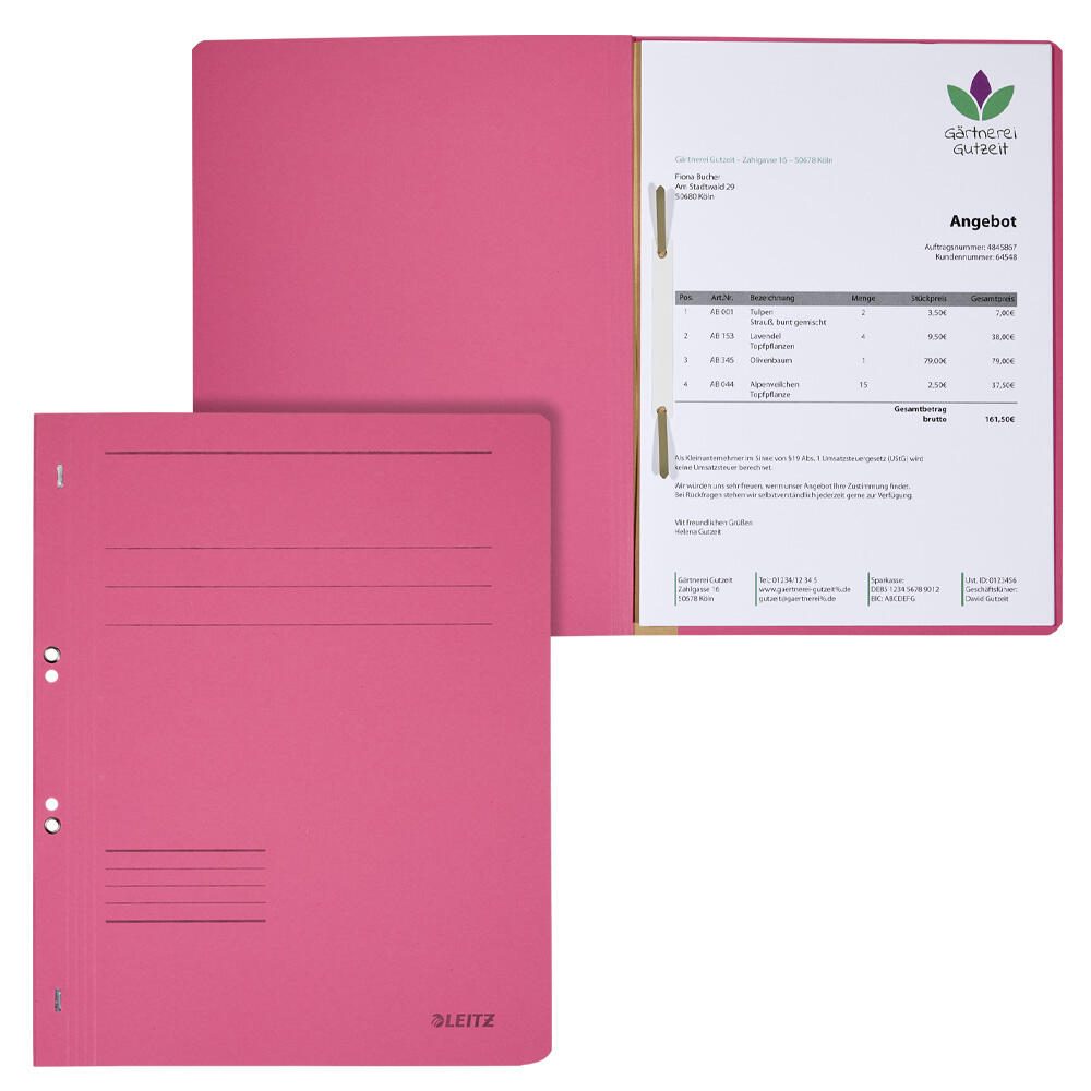 Der LEITZ Ösenhefter in leuchtendem Rot ist die perfekte Lösung für alle, die eine zuverlässige und ansprechende Möglichkeit suchen, Dokumente im DIN A4 Format zu organisieren. Mit seiner hochwertigen Ausführung, die einen ganzen Vorderdeckel umfasst, bietet dieser Ösenhefter nicht nur Schutz, sondern auch eine ansprechende Präsentation deiner Unterlagen. Die kaufmännische und Amtsheftung sorgt dafür, dass deine Dokumente sicher und ordentlich zusammengehalten werden. Egal, ob du wichtige Geschäftsdokumente, Verträge oder persönliche Unterlagen abheften möchtest, dieser Ösenhefter bietet dir die nötige Stabilität und Langlebigkeit. Hergestellt aus robustem Manila-Karton, ist er nicht nur umweltfreundlich, sondern auch besonders strapazierfähig, was ihn ideal für den täglichen Gebrauch macht. Mit einer praktischen 4-fach-Lochung ausgestattet, ermöglicht der LEITZ Ösenhefter eine einfache Handhabung und Anpassung an deine individuellen Bedürfnisse. Du kannst deine Dokumente schnell und unkompliziert abheften, ohne dabei Kompromisse bei der Qualität einzugehen. Die auffällige rote Farbe sorgt zudem dafür, dass deine Unterlagen in jedem Büro oder Arbeitsumfeld ins Auge fallen und leicht wiedergefunden werden können. In einer praktischen Packung von 50 Stück ist der Ösenhefter nicht nur eine hervorragende Wahl für den persönlichen Gebrauch, sondern auch für Büros, Schulen oder Institutionen, die eine große Menge an Dokumenten verwalten müssen. Mit dem LEITZ Ösenhefter DIN A4 kaufmännische Heftung, Amtsheftung rot investierst du in ein Produkt, das sowohl Funktionalität als auch Ästhetik vereint und dir hilft, deine Unterlagen stets in bester Ordnung zu halten.Technische Daten