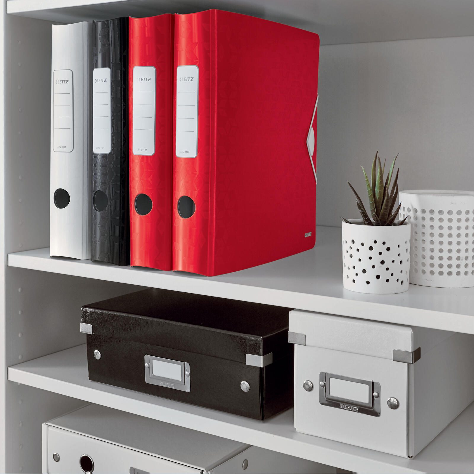 Der LEITZ Ordner mit einer Rückenbreite von 6,5 cm ist die ideale Lösung für die ordentliche Ablage und Organisation von Dokumenten im DIN A4 Format. Hergestellt aus hochwertigem Kunststoff, bietet dieser Ordner nicht nur Langlebigkeit, sondern auch eine ansprechende Optik in einem lebhaften Rot, das in jedem Büro oder Zuhause für einen Farbtupfer sorgt. Die durchdachte Konstruktion umfasst eine praktische 180°-Hebelmechanik, die ein einfaches Öffnen und Schließen ermöglicht. Mit einem geklebten Rückenschild kannst du deine Unterlagen klar und deutlich kennzeichnen, was die Suche nach speziellen Dokumenten erheblich erleichtert. Ein Gummizugverschluss sorgt dafür, dass deine Unterlagen sicher im Ordner verstaut sind und nicht herausfallen können. Das Griffloch ermöglicht ein einfaches Herausnehmen des Ordners aus Regalen oder Schubladen, wodurch der Zugriff auf deine Dokumente noch bequemer wird. Dieser Ordner gehört zur Serie Active WOW 1107 von LEITZ, die für ihre Funktionalität und ihr modernes Design bekannt ist. Trotz der kompakten Größe von 6,5 cm bietet der Ordner ausreichend Platz für eine Vielzahl von Dokumenten, ohne dabei viel Platz im Regal einzunehmen. Ob für das Büro, die Schule oder das Homeoffice, der LEITZ Ordner ist ein unverzichtbares Hilfsmittel, um deine Unterlagen ordentlich und sicher zu verwahren. Die Kombination aus ansprechendem Design und praktischen Funktionen macht diesen Ordner zu einer hervorragenden Wahl für alle, die Wert auf Organisation und Stil legen.Technische Daten