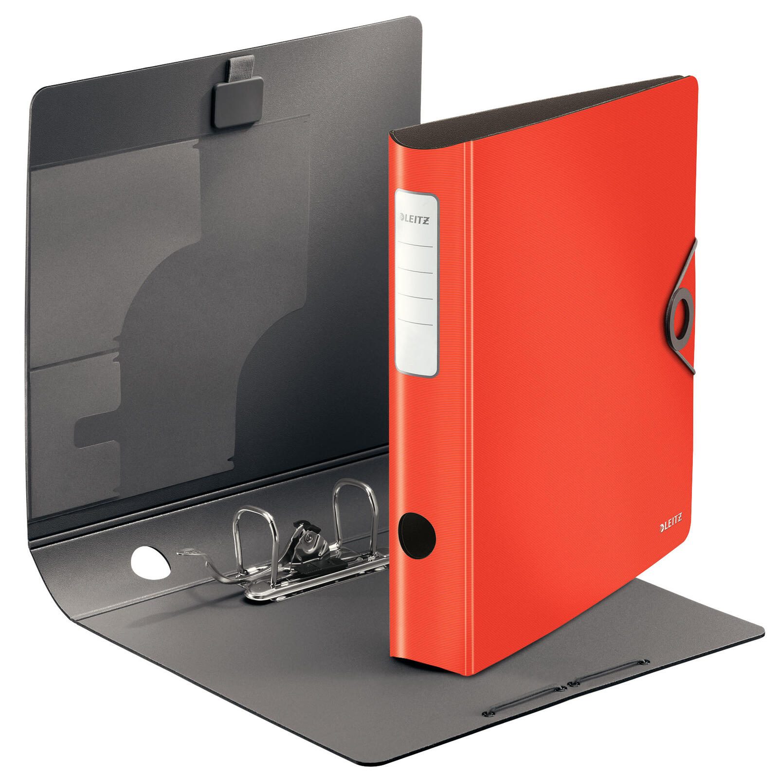 Der LEITZ Ordner mit einer Rückenbreite von 6,5 cm ist die ideale Lösung für die übersichtliche und stilvolle Organisation deiner Dokumente im DIN A4 Format. Hergestellt aus hochwertigem Kunststoff, bietet dieser Ordner nicht nur Langlebigkeit, sondern auch eine ansprechende Optik in einem hellroten Farbton, der deinem Arbeitsplatz einen frischen Akzent verleiht. Die praktische Hebelmechanik ermöglicht ein einfaches Öffnen und Schließen des Ordners, sodass du schnell auf deine Unterlagen zugreifen kannst. Mit der 180°-Mechanik hast du zudem die Möglichkeit, den Ordner vollständig zu öffnen, was das Einlegen und Entnehmen von Dokumenten erheblich erleichtert. Der geklebte Rückenschild sorgt dafür, dass du deine Ordnerinhalte jederzeit klar kennzeichnen kannst, während das integrierte Griffloch das Handling des Ordners vereinfacht und dir das Herausziehen aus Regalen erleichtert. Die Verwendung von Papier und Polypropylen (PP) als Oberflächenmaterial garantiert eine robuste und zugleich ansprechende Haptik. Obwohl der Ordner über keine Raumsparschlitze verfügt, bietet er dennoch ausreichend Platz für deine Unterlagen und sorgt dafür, dass alles ordentlich verstaut wird. Mit einem eleganten Gummizugverschluss bleibt der Inhalt sicher geschützt, auch wenn du den Ordner transportierst. Dieser LEITZ Ordner ist somit nicht nur funktional, sondern auch ein stilvolles Accessoire für dein Büro oder dein Zuhause. Ob für wichtige Dokumente, Präsentationen oder persönliche Unterlagen – der LEITZ Ordner ist die perfekte Wahl, um alles in bester Ordnung zu halten.Technische Daten