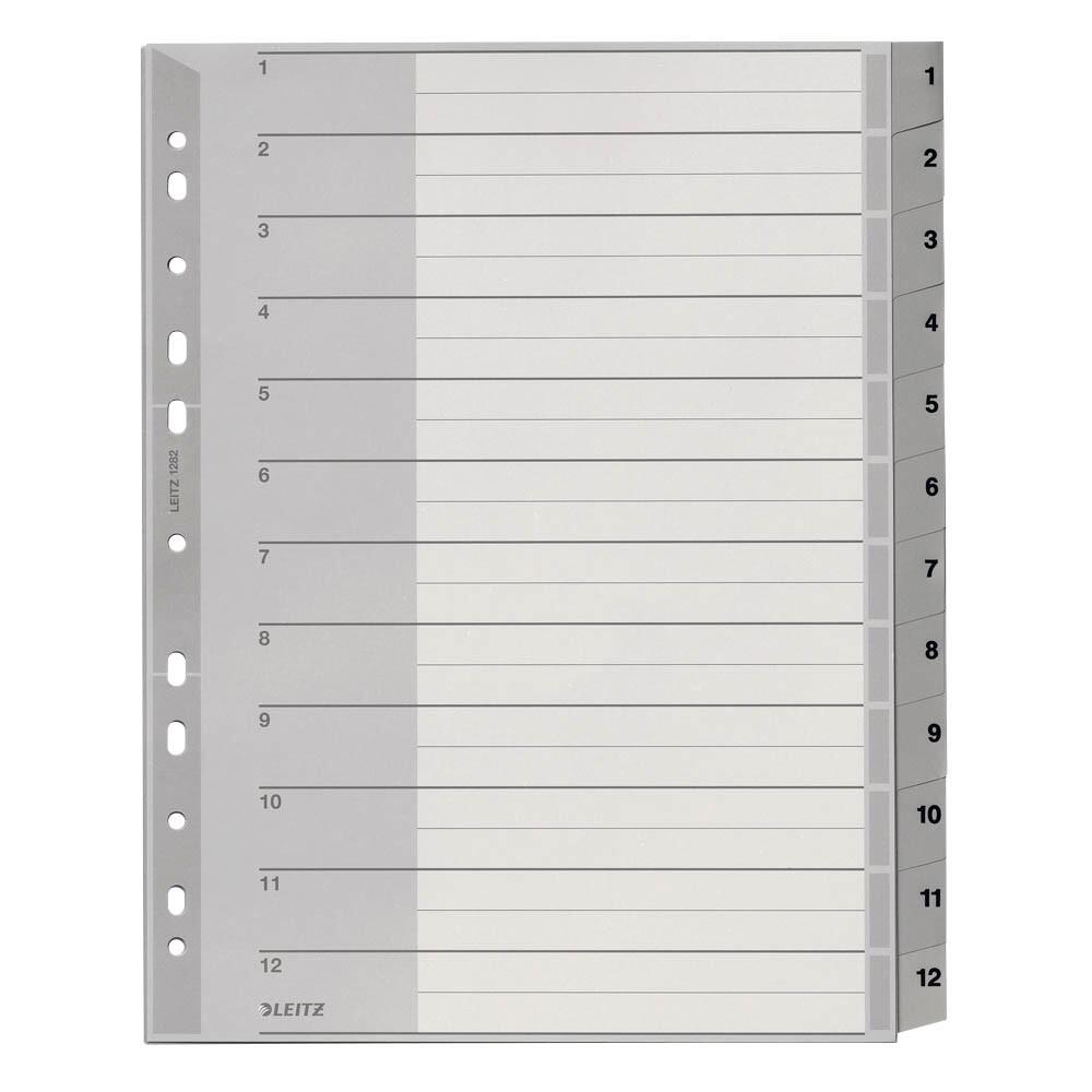 LEITZ Ordnerregister 1282 Vollformat, Überbreite 1-12 grau - 1 Satz