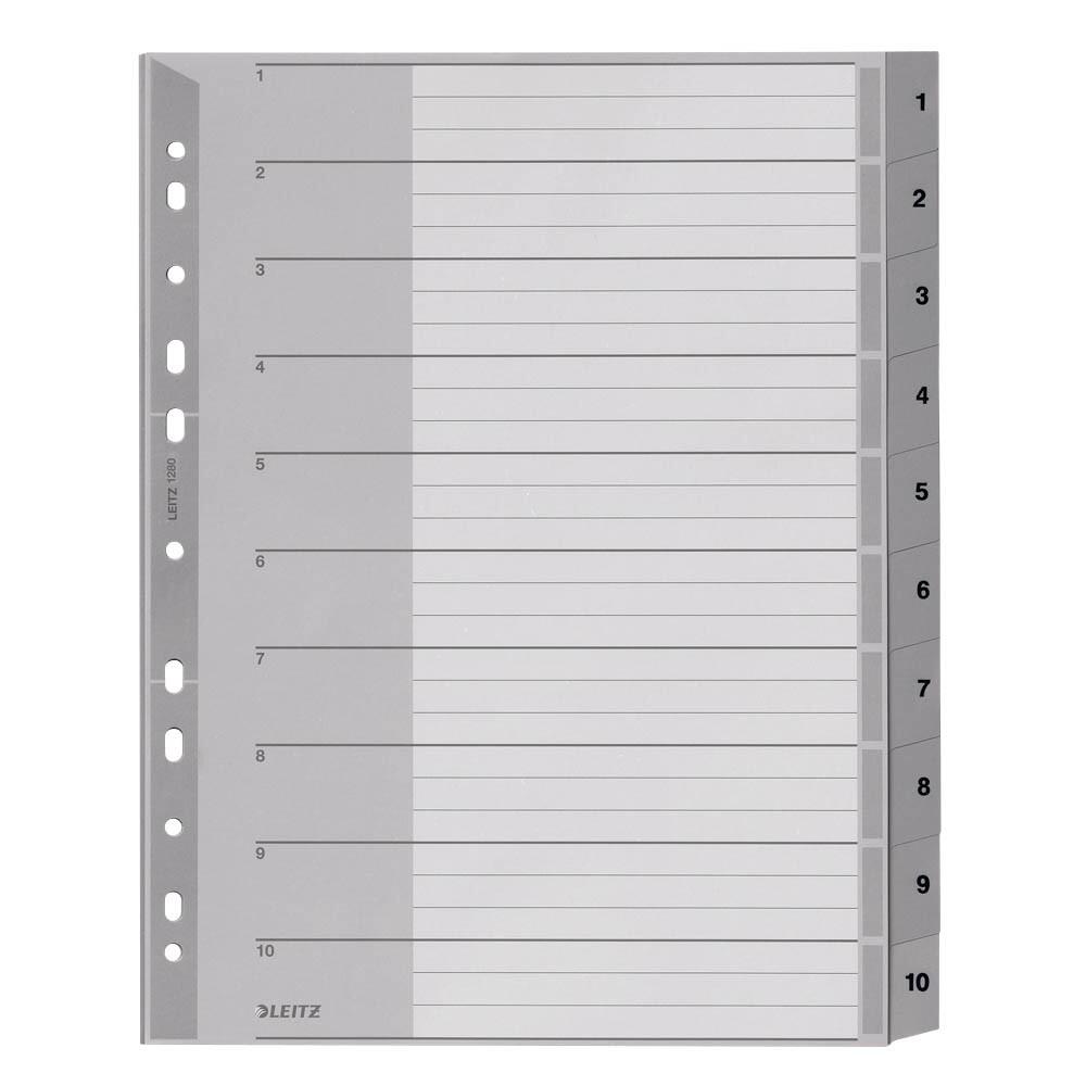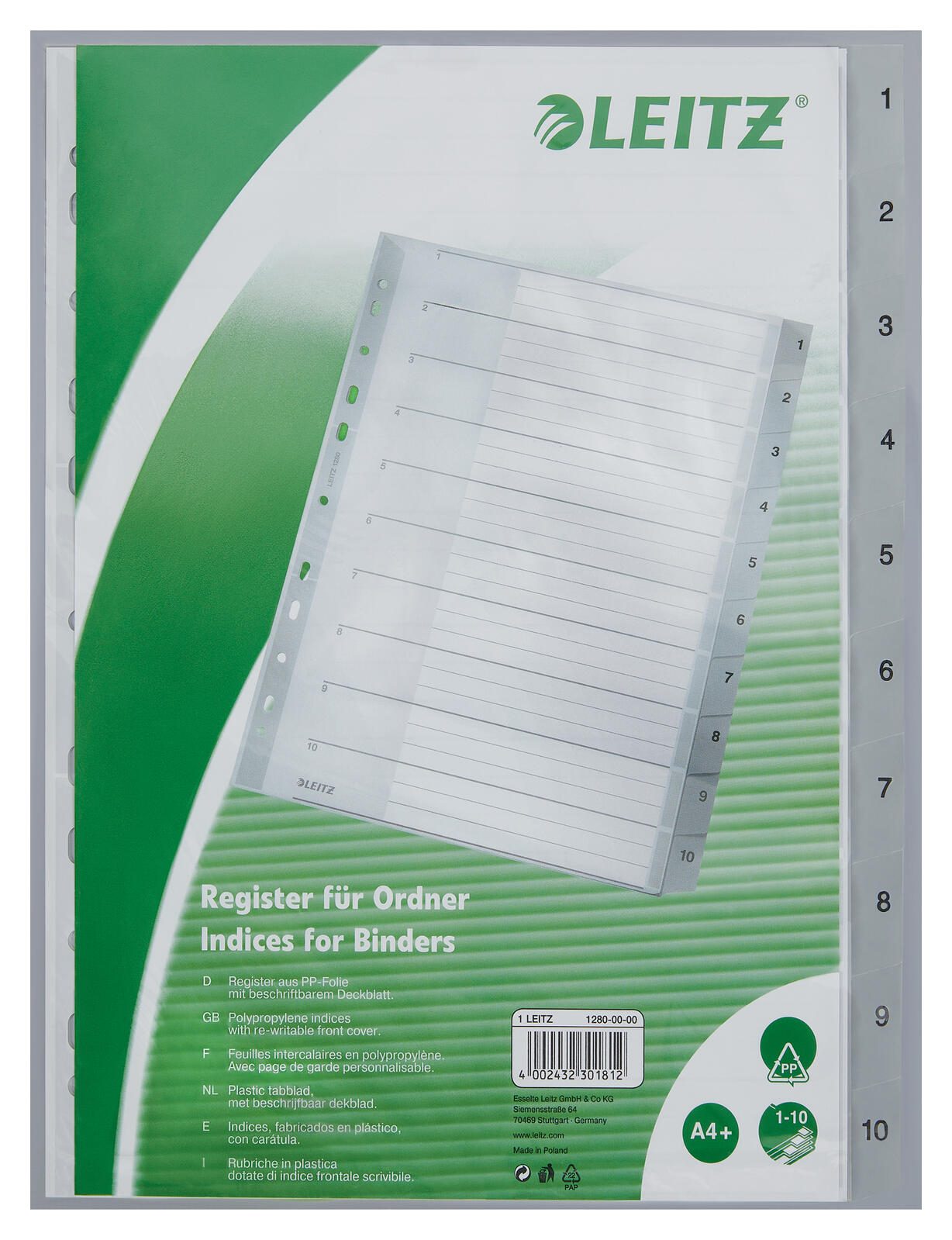 LEITZ Ordnerregister 1280 Vollformat, Überbreite 1-10 - grau