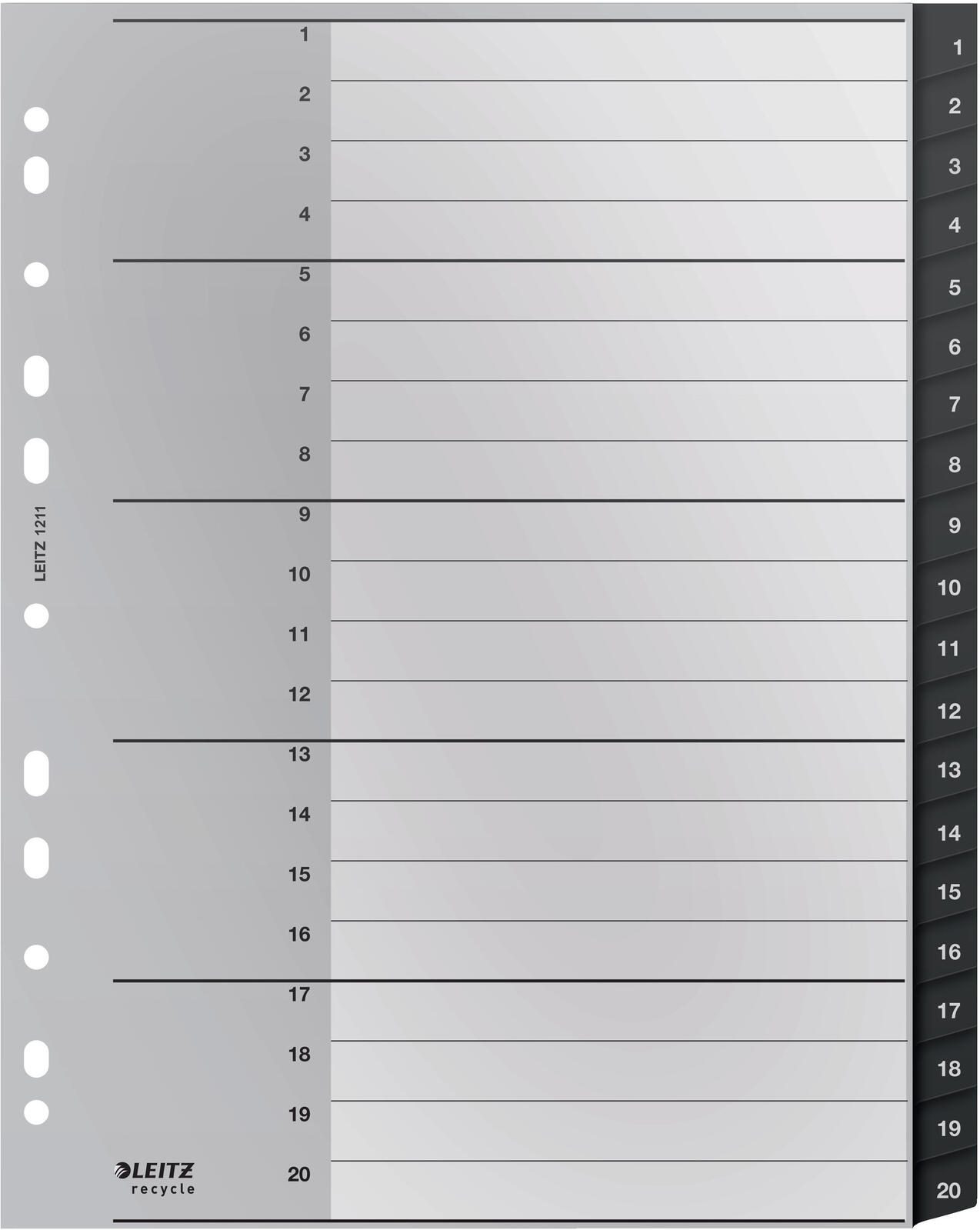 LEITZ Ordnerregister Vollformat, Überbreite 1-20 DIN A4