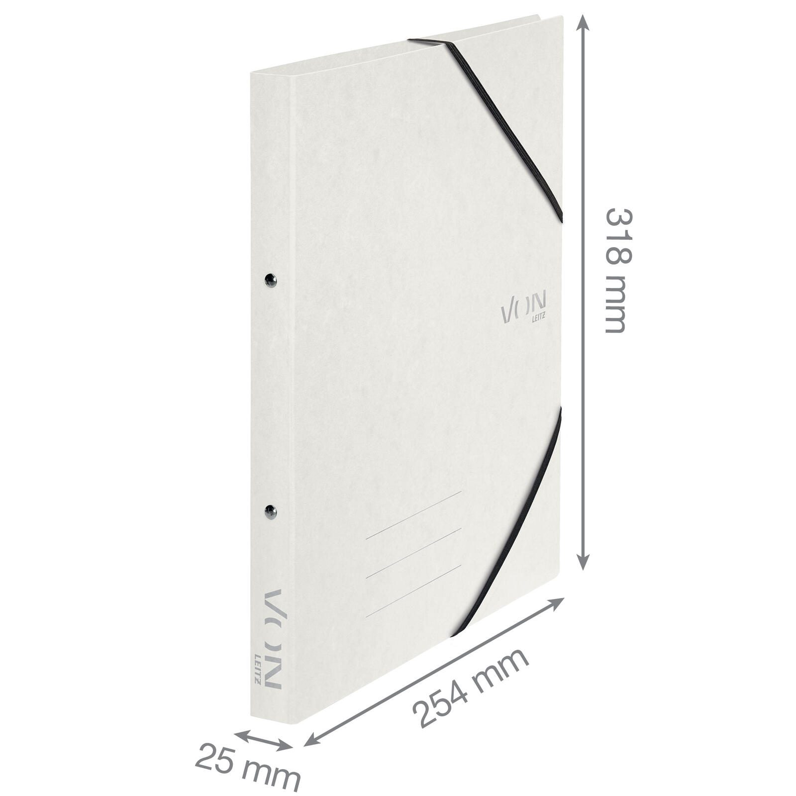Das LEITZ Ringbuch ist speziell für Dokumente im Format DIN A4 konzipiert und bietet eine Rückenbreite von 2,50 cm. Es ist in einem schlichten Weiß gehalten, das sich unauffällig in jede Büroumgebung einfügt. Das Material des Ringbuchs besteht aus robustem Karton, der für eine stabile und langlebige Nutzung sorgt.
