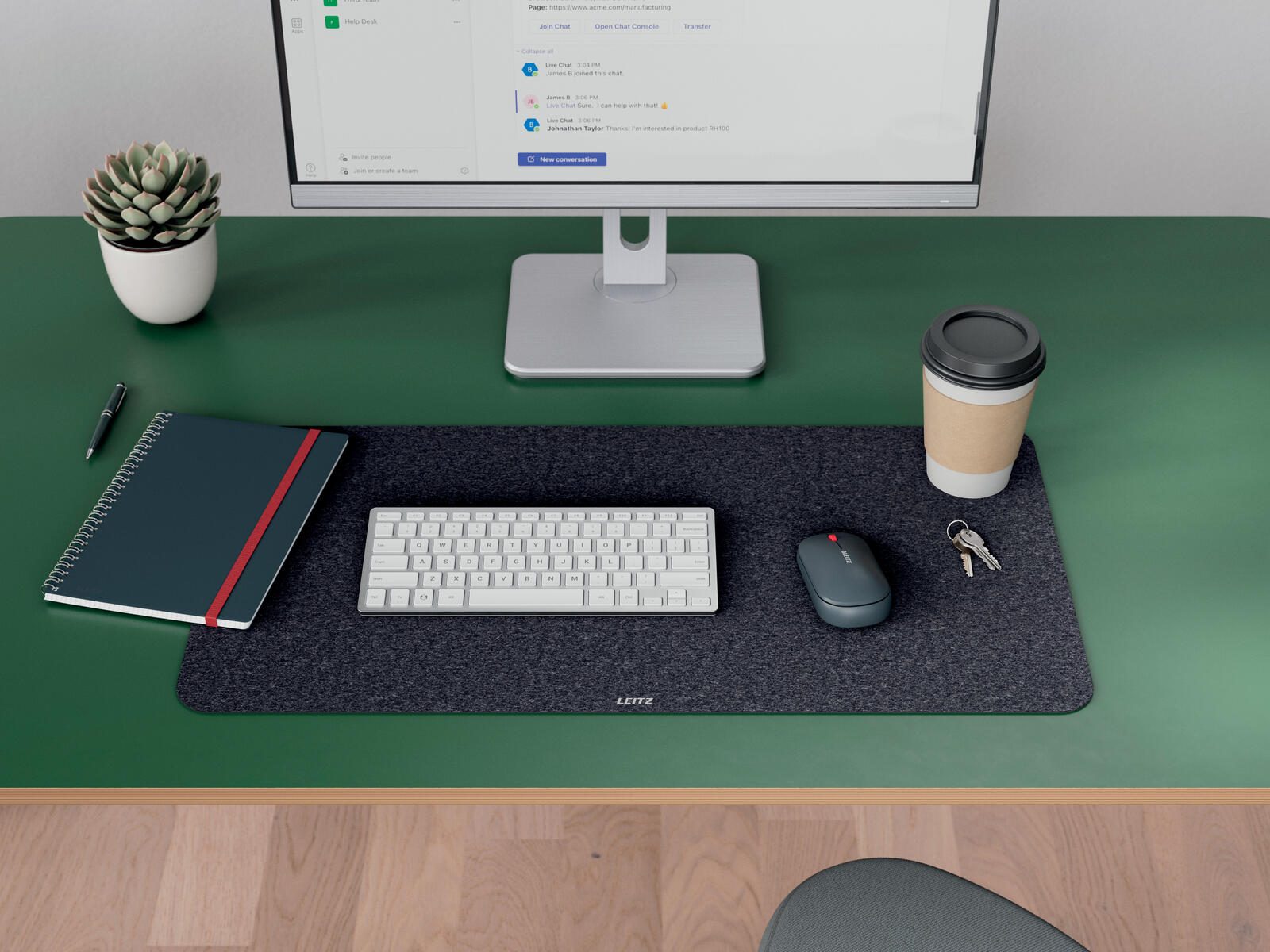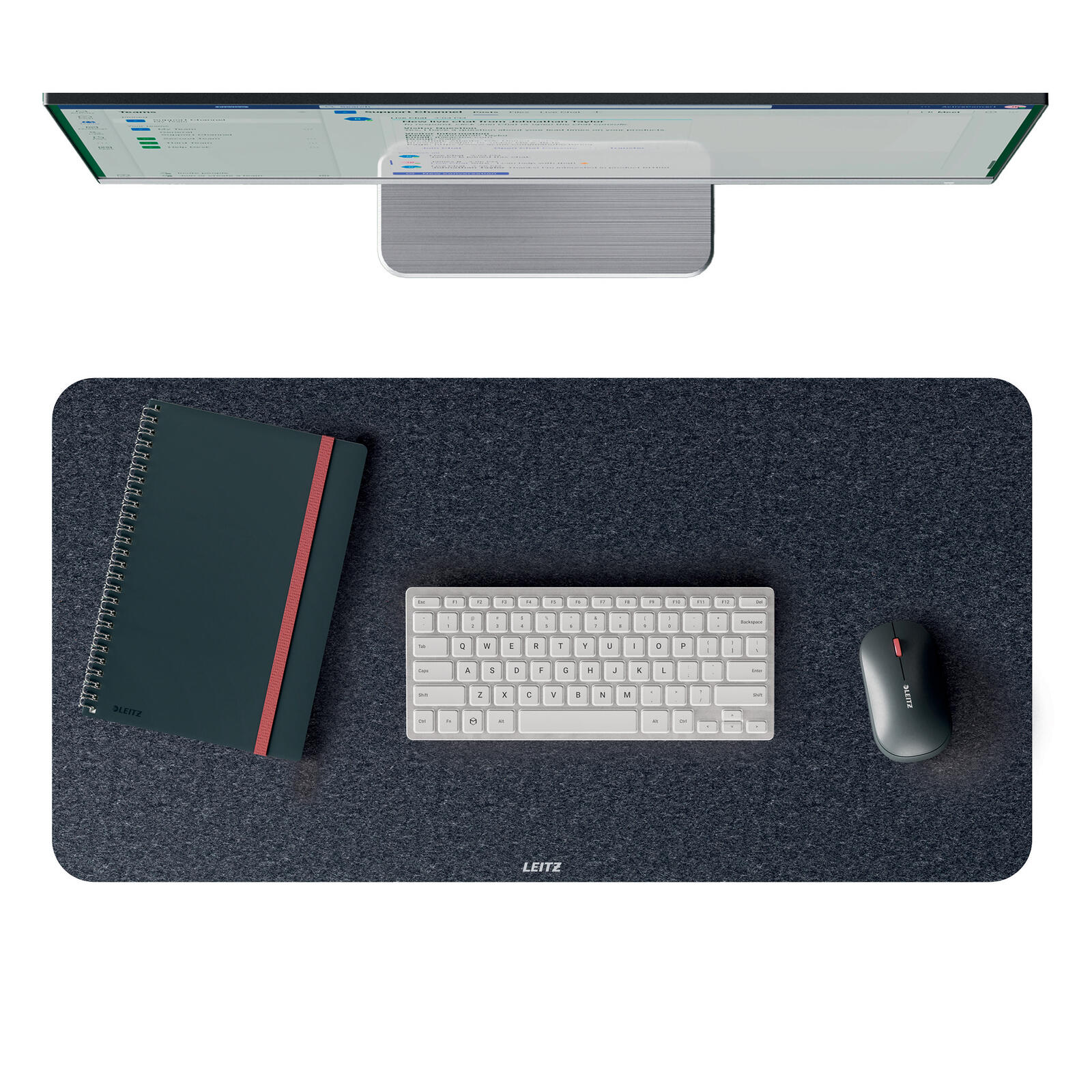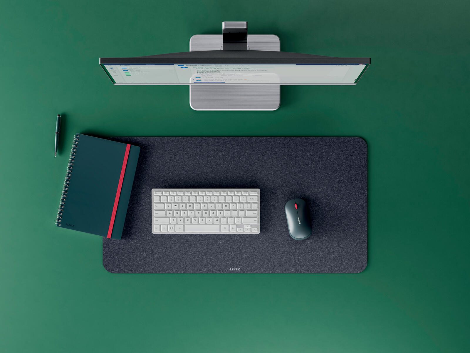 Besonders hervorzuheben ist die nachhaltige Herstellung der Unterlage. Sie besteht zu 75 % aus recycelten Materialien, darunter 100 % recycelter Polyesterfilz und eine rutschfeste Gummirückseite, die zu 70 % aus recyceltem Material gefertigt ist. Diese Kombination sorgt für eine sichere Positionierung auf dem Schreibtisch und verhindert ein Verrutschen während der Arbeit.