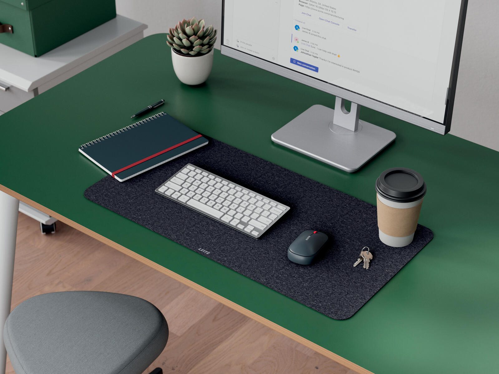 Die graue Farbgebung der Schreibtischunterlage fügt sich unauffällig in verschiedene Büro- und Arbeitsumgebungen ein. Die Filzoberfläche schützt den Schreibtisch vor Kratzern und bietet gleichzeitig eine angenehme Unterlage für Tastatur, Maus oder Schreibutensilien. Mit dieser Schreibtischunterlage von LEITZ erhältst Du ein funktionales und nachhaltiges Produkt, das den Arbeitsplatz sinnvoll ergänzt.