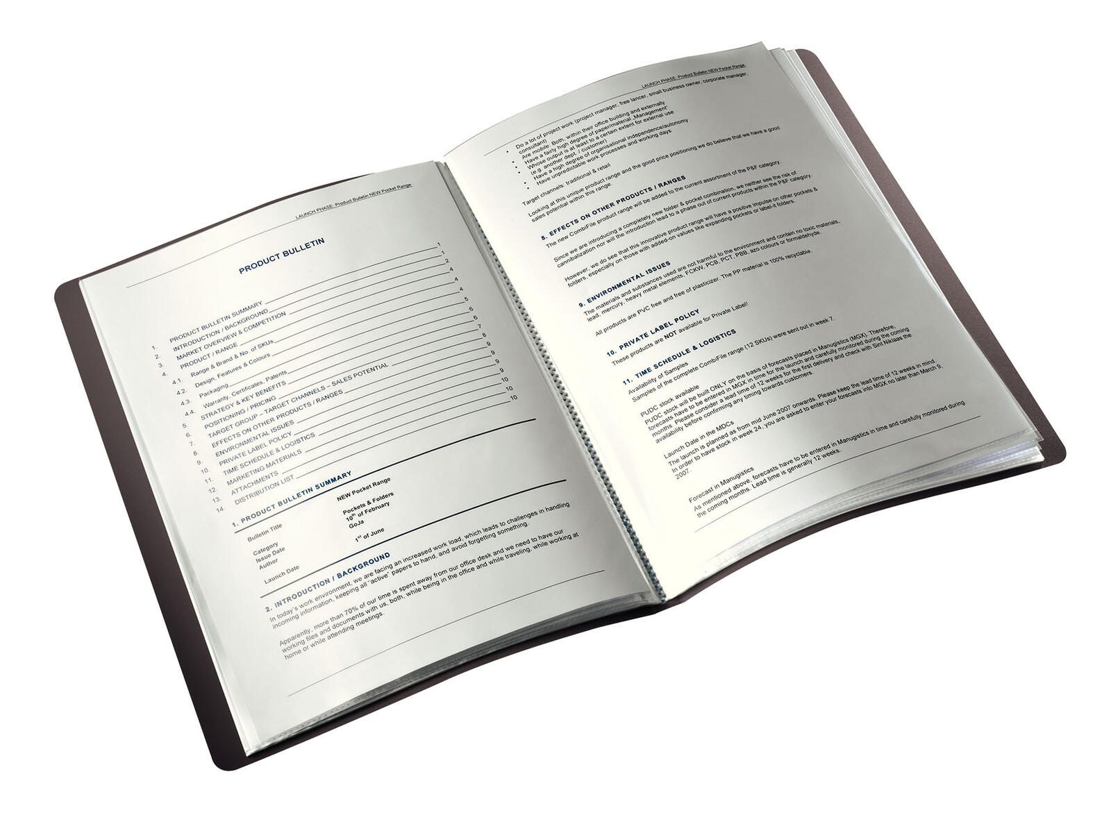 Die glatte Oberfläche sorgt für ein angenehmes Berührungsgefühl und eine ansprechende Optik. Der Rücken des Sichtbuchs hat eine Breite von 1,3 cm und bietet genügend Platz für eine klare Beschriftung, damit du deine Unterlagen leicht identifizieren kannst.