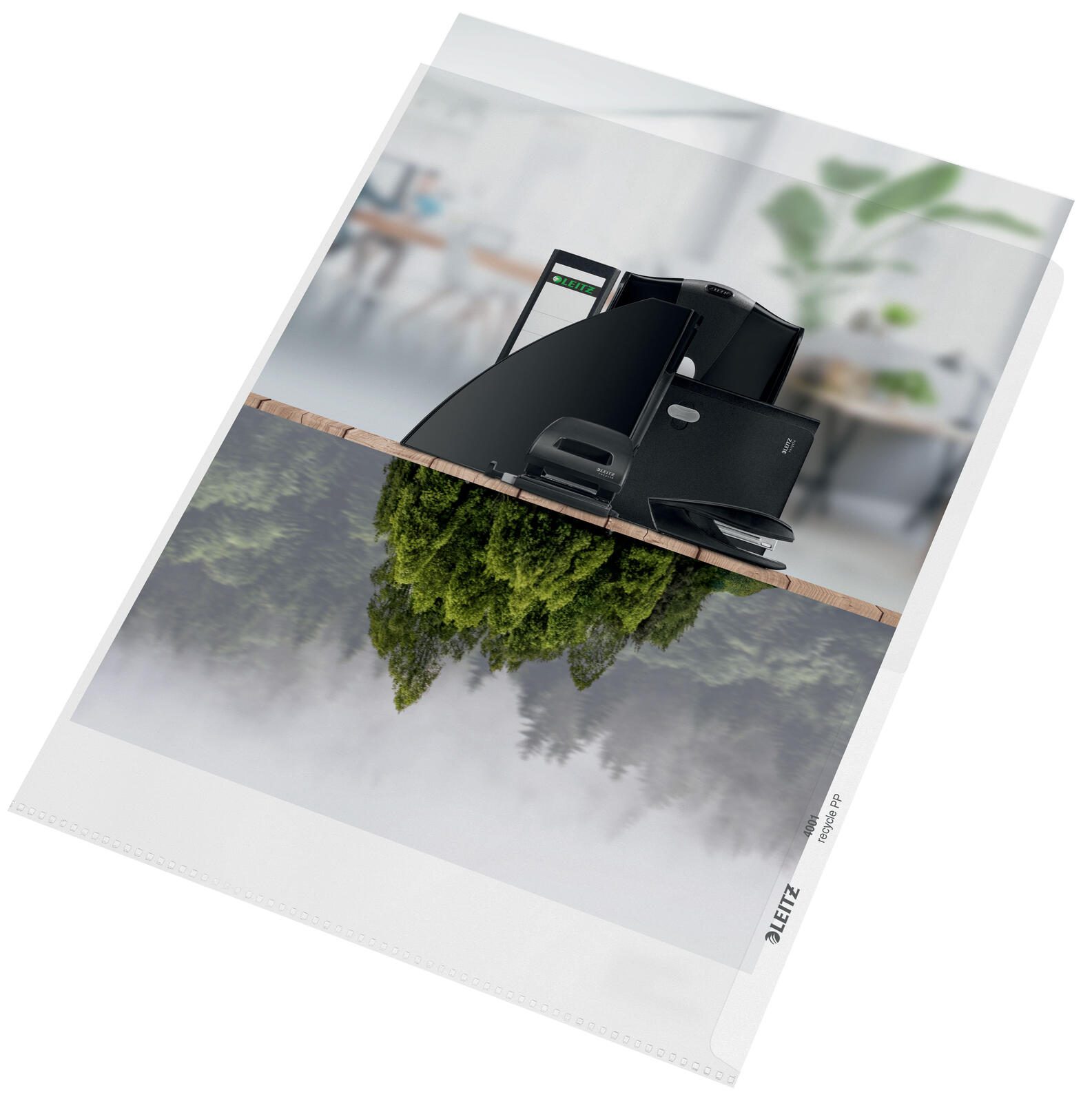 Die LEITZ Sichthüllen DIN A4 genarbt 0.14 mm bieten eine ideale Lösung für die sichere und stilvolle Aufbewahrung deiner Dokumente. Diese transparenten Hüllen sind aus 90% recyceltem Polypropylen (PP) hergestellt, was nicht nur umweltfreundlich ist, sondern auch höchste Qualität garantiert. Sie sind zu 100% recycelbar und tragen somit aktiv zur Reduzierung von Kunststoffabfällen bei. Mit einer Stärke von 0.14 mm sind die Hüllen robust genug, um deine wichtigen Unterlagen zu schützen, während die genarbte Oberfläche für eine ansprechende Optik und zusätzliche Griffigkeit sorgt. Die dokumentenechte Ausführung stellt sicher, dass deine Papiere vor Verfärbungen und Beschädigungen geschützt sind, sodass du dir keine Sorgen um die langfristige Erhaltung deiner Dokumente machen musst. Die Öffnung der Hüllen erfolgt sowohl oben als auch seitlich, was einen einfachen Zugriff auf deine Unterlagen ermöglicht. Dies ist besonders praktisch, wenn du häufig auf bestimmte Dokumente zugreifen musst. Das schlichte, transparente Design ermöglicht es dir, den Inhalt auf einen Blick zu erkennen, ohne die Hülle öffnen zu müssen. Mit einer Packung, die 25 Stück enthält, bist du bestens ausgestattet, um deine Dokumente ordentlich zu organisieren. Ob im Büro, in der Schule oder zu Hause – die LEITZ Sichthüllen sind die perfekte Wahl für alle, die Wert auf Qualität und Nachhaltigkeit legen. Die Serie Recycle 4001 von LEITZ steht für verantwortungsbewusste Produktgestaltung und bietet dir eine praktische und stilvolle Lösung für die Aufbewahrung deiner wichtigen Papiere.Technische Daten