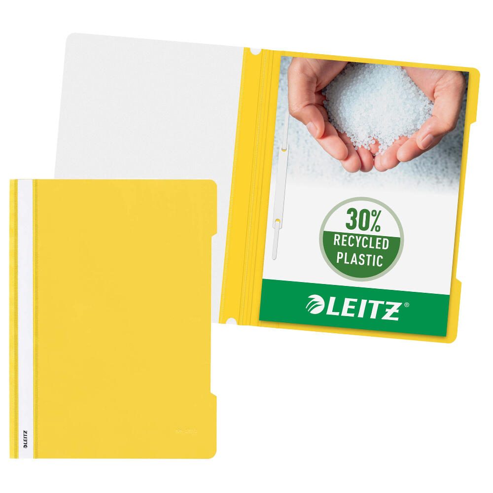 Der LEITZ Schnellhefter DIN A4 aus hochwertigem Polypropylen (PP) in einem auffälligen Gelb ist die perfekte Lösung, um deine Dokumente stilvoll und sicher zu organisieren. Mit einer praktischen kaufmännischen Heftung bietet dieser Schnellhefter die Möglichkeit, bis zu 60 Blatt im DIN A4 Format aufzunehmen. Dies macht ihn ideal für den Einsatz im Büro, in der Schule oder zu Hause, wo eine übersichtliche Ablage von Unterlagen unerlässlich ist. Die transparente Vorderseite des Schnellheftes ermöglicht es dir, das Titelblatt deiner Dokumente sichtbar zu präsentieren, was besonders vorteilhaft ist, wenn du mehrere Projekte oder Themen verwaltest. Die leuchtende gelbe Farbe sorgt nicht nur für einen frischen Look, sondern hebt deine Unterlagen auch hervor, sodass du sie schnell und einfach wiederfinden kannst. Mit einer Packung von 25 Stück bist du bestens ausgestattet, um deine Dokumente zu sortieren und zu schützen. Das robuste Material aus Polypropylen sorgt dafür, dass der Schnellhefter langlebig und widerstandsfähig ist, während er gleichzeitig leicht und flexibel bleibt. Dies macht ihn zu einem praktischen Begleiter für jeden, der Wert auf Organisation und Übersichtlichkeit legt. Egal ob für Präsentationen, Berichte oder persönliche Notizen – der LEITZ Schnellhefter ist die ideale Wahl, um deine Unterlagen professionell und ansprechend zu präsentieren. Vertraue auf die Qualität und Funktionalität von LEITZ und bringe Ordnung in dein Dokumentenmanagement.Technische Daten