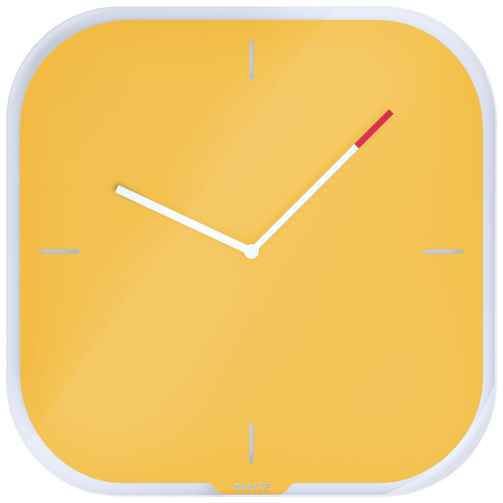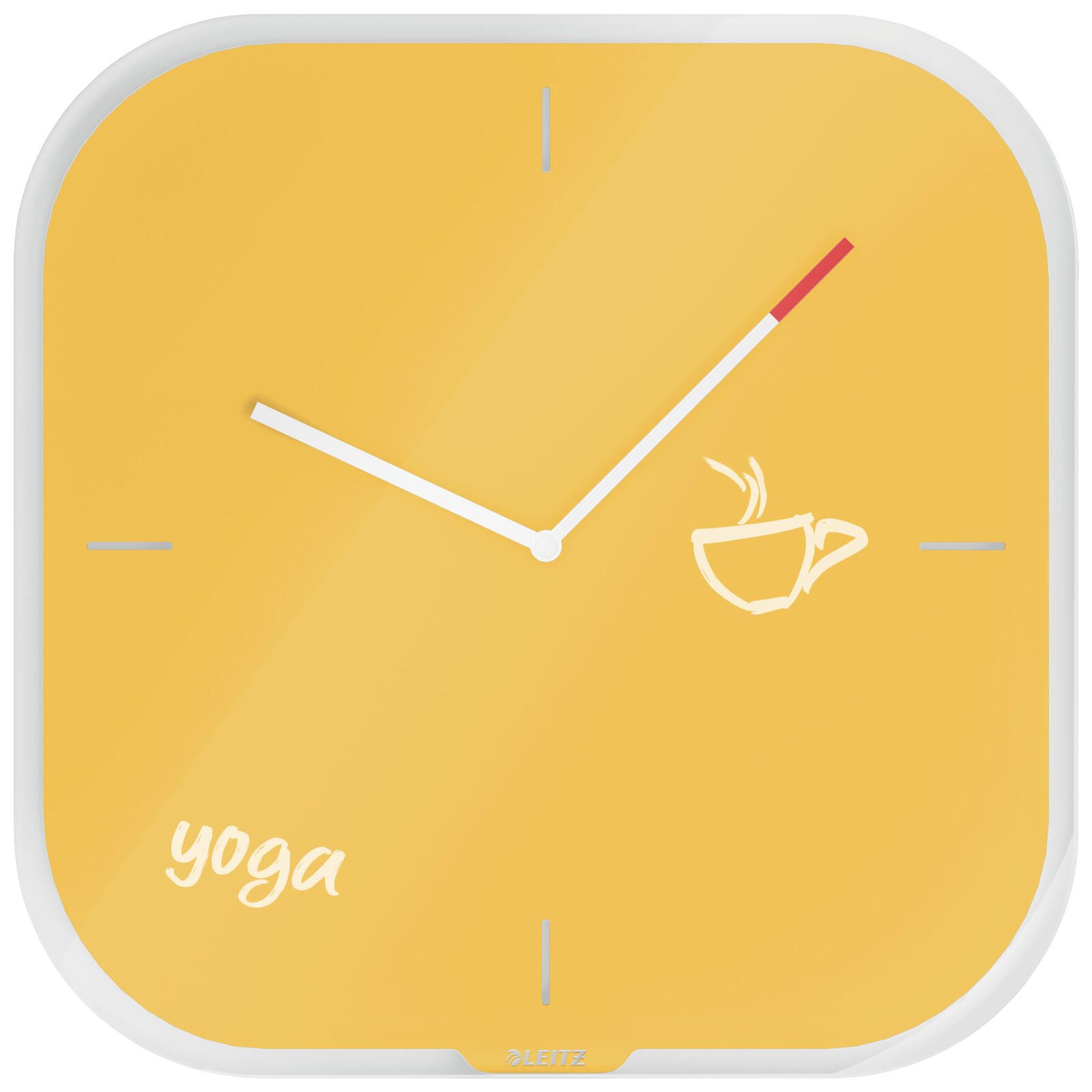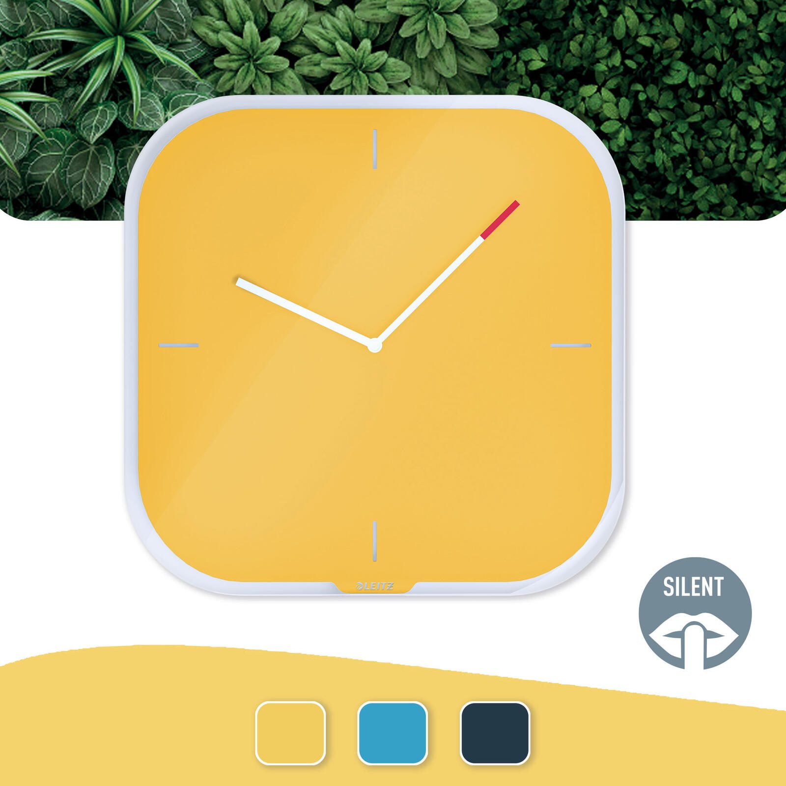 Diese Leitz Wanduhr Cosy in Gelb besticht durch ihr eckiges Design und ist ideal zur Wandmontage geeignet. Mit einem Sekundenzeiger ausgestattet, bietet sie neben der Zeitmessung auch eine praktische beschreibbare Oberfläche für Notizen oder Zahlen. Die gelbe Farbe verleiht dieser Uhr eine frische und lebhafte Ausstrahlung, die jeden Raum aufhellt. Die Leitz Wanduhr Cosy gehört zur gleichnamigen Serie und besticht durch ein Zifferblatt im Balkendesign. Diese analoge Uhr benötigt eine Mignon AA Batterie (nicht im Lieferumfang enthalten) und verfügt über keine Datumsanzeige. Als Produkt des renommierten Herstellers LEITZ garantiert sie hochwertige Verarbeitung und präzise Zeitmessung. Mit der Leitz Wanduhr Cosy gelb holst du dir nicht nur ein zuverlässiges Zeitmessinstrument nach Hause, sondern auch ein dekoratives Element, das durch Funktionalität und Design überzeugt. Besonders praktisch ist die beschreibbare Oberfläche, die dir erlaubt, wichtige Notizen direkt auf der Uhr festzuhalten. Gönn dir mit dieser Uhr von Leitz ein Stück Alltagskomfort und dekorativen Charme zugleich.Technische Daten