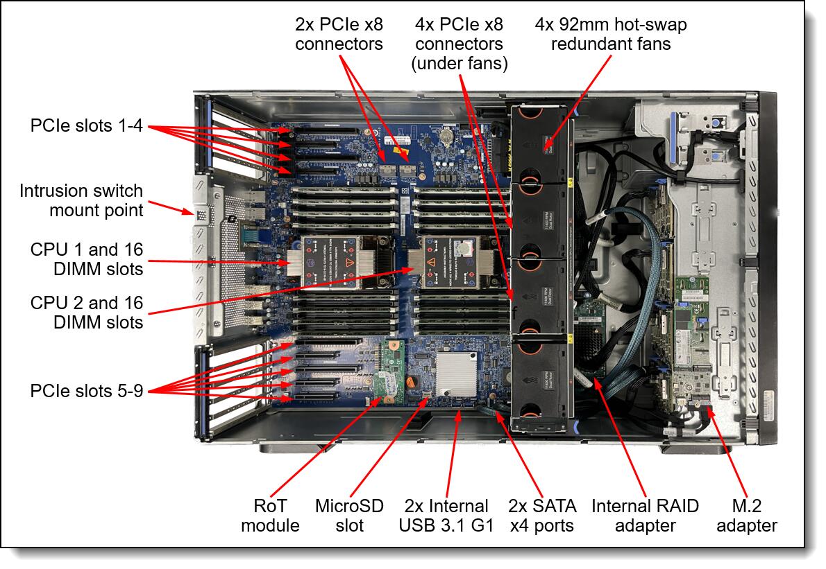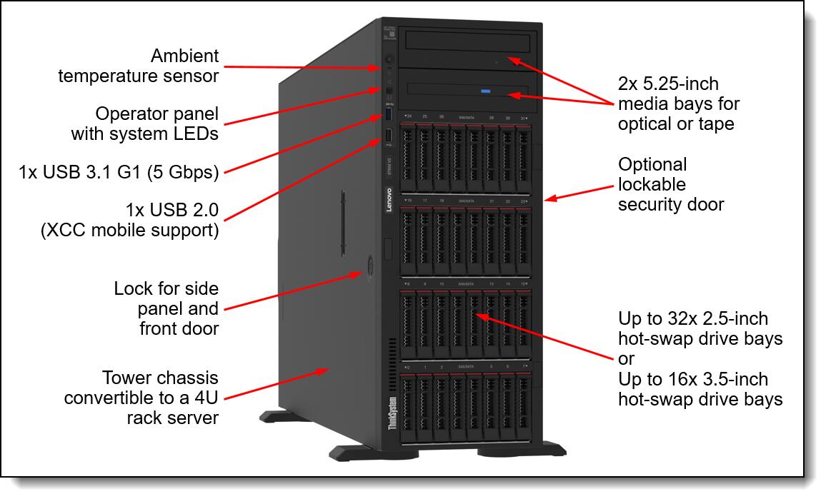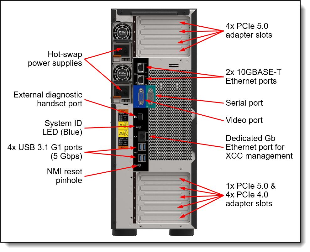 • 1x 1100W Titanium (max. 2), XClarity Controller 2 (XCC2) Platinum