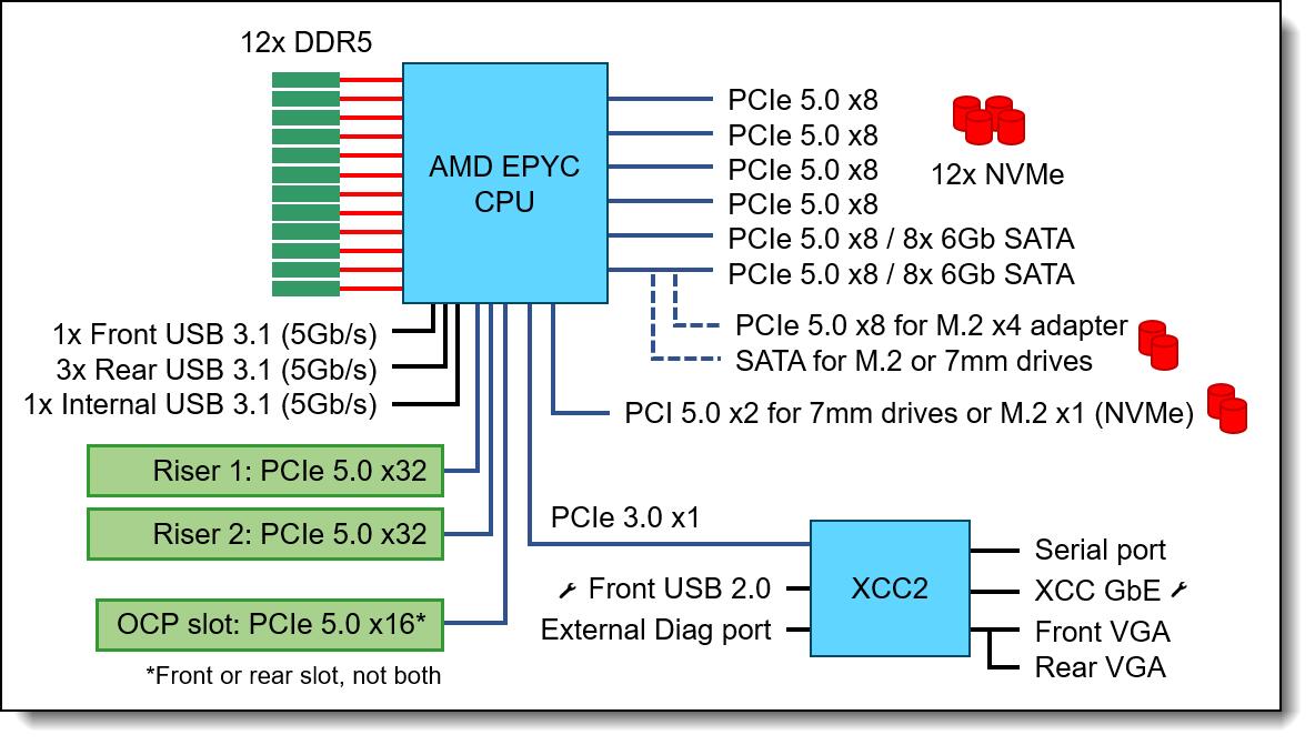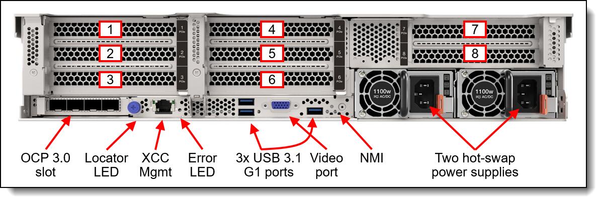 - 1x 1100W Titanium (max. 2), XClarity Controller 2 (XCC2) Standard