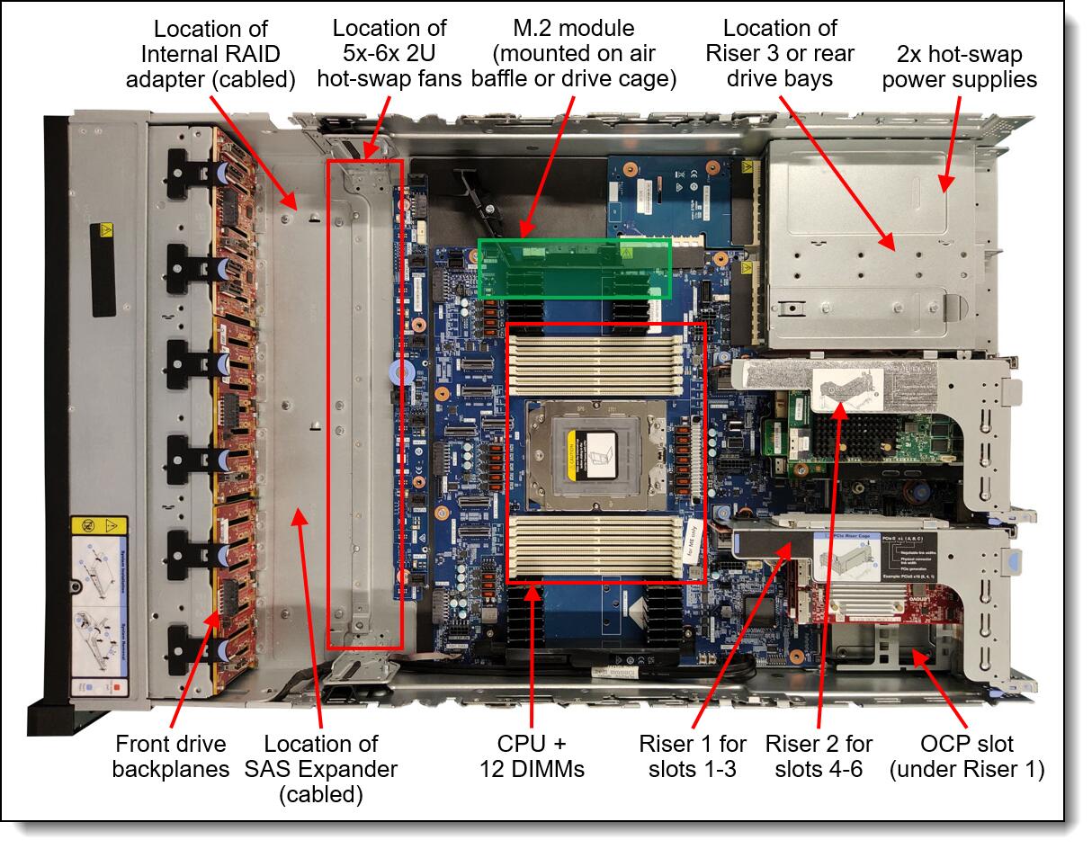 - Optional OCP 3.0 (1GbE, 10GbE oder 25GbE) / PCIe-Adapter, RAID 9350-8i 2GB Flash