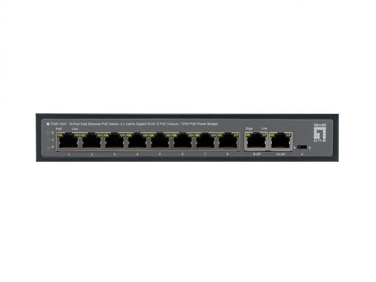 LevelOne Switch 10 Fast Ethernet-Ports mit 8 PoE-Ports 120W 2 Uplink Gigabit-Ports (FGP-1031)