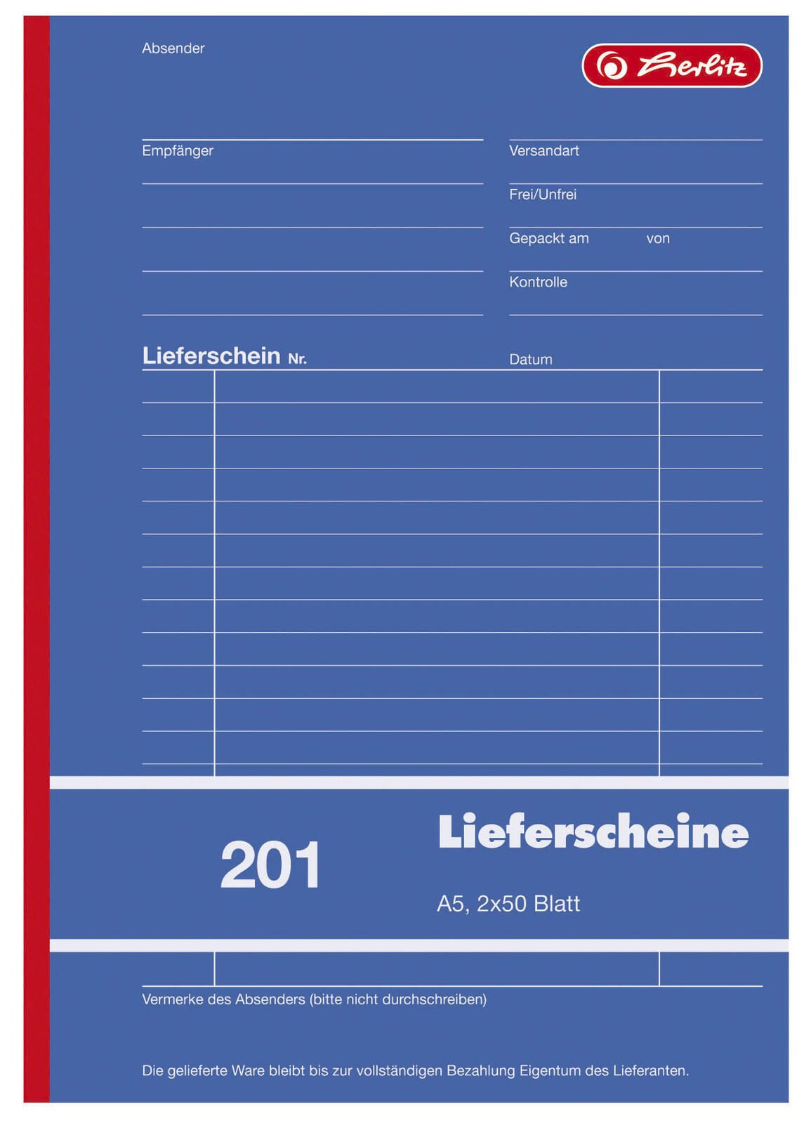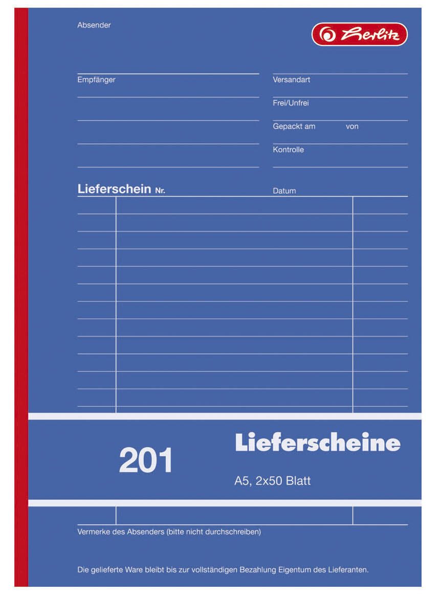 herlitz Formularbuch Lieferschein mit Empfangsschein DIN A5 2x 50 Seiten