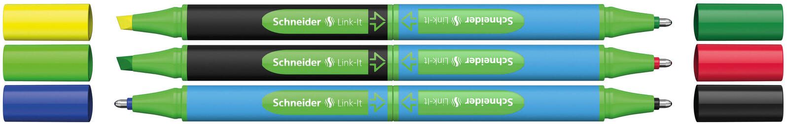 Schneider Schreibset Link-It Office 4 Link-It Slider: schwarz, rot, blau, grün 2 Link-It Highlighter: gelb,grün 1 Set = 6 St.