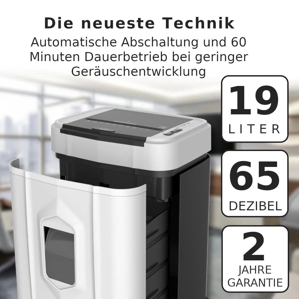 Mit diesem Aktenvernichter kannst du vertrauliche Unterlagen schnell und effizient vernichten und sicherstellen, dass keine sensiblen Informationen in falsche Hände geraten. Dank der hohen Sicherheitsstufe P-5 zerkleinert das Gerät das Papier in winzige Partikel, die ein Höchstmaß an Vertraulichkeit gewährleisten.