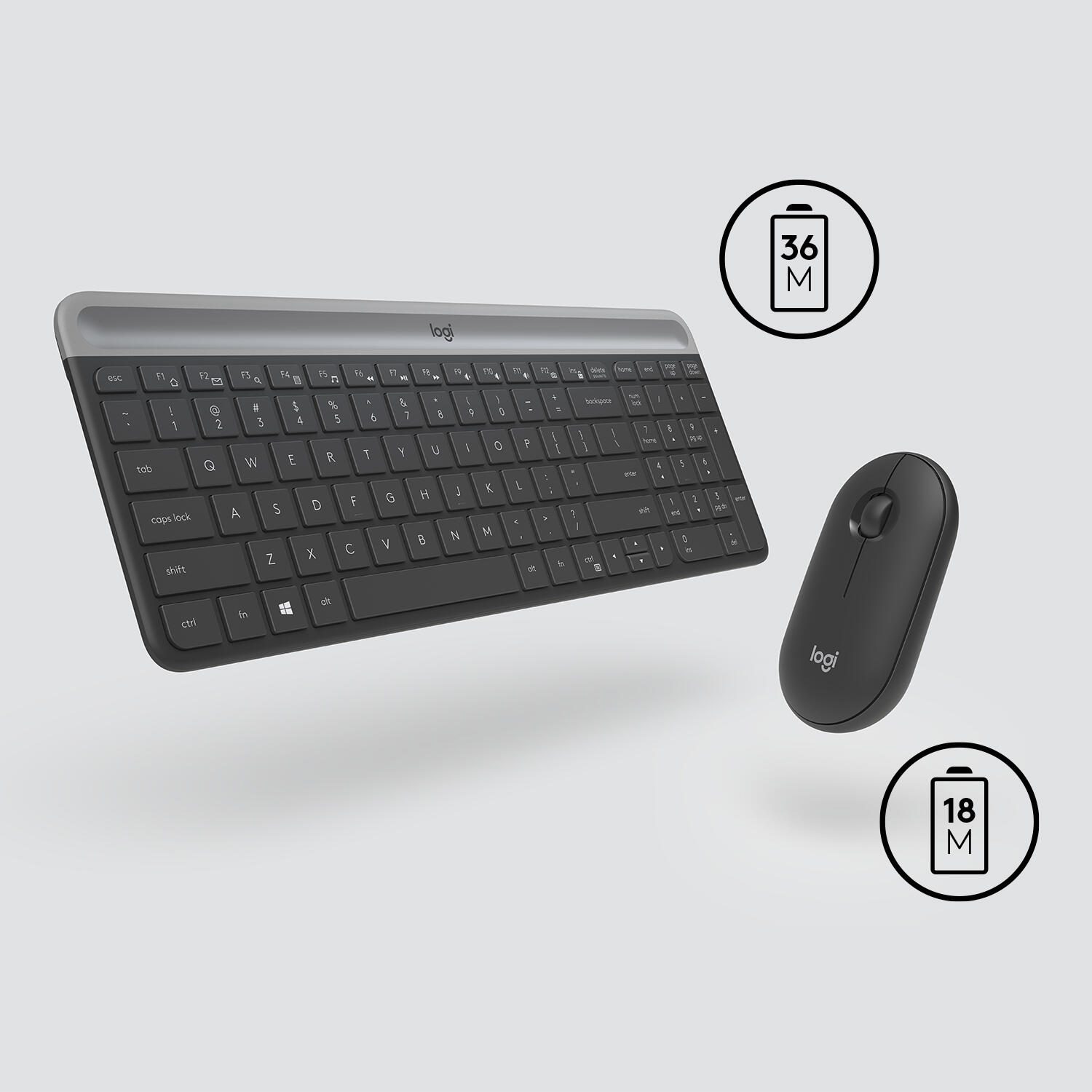 Die kompakte Tastatur verfügt über einen Ziffernblock und 12 Funktionstasten, sodass alle erforderlichen Tasten zur Verfügung stehen. Die schlanke Maus ist extrem mobil und lässt sich für produktives Arbeiten unterwegs problemlos in jeder Tasche verstauen. Dank des kompakten Profils der Slim Combo können Sie selbst auf Schreibtischoberflächen mit wenig Platz so arbeiten, dass sich die Maus immer in bequemer Reichweite befindet.