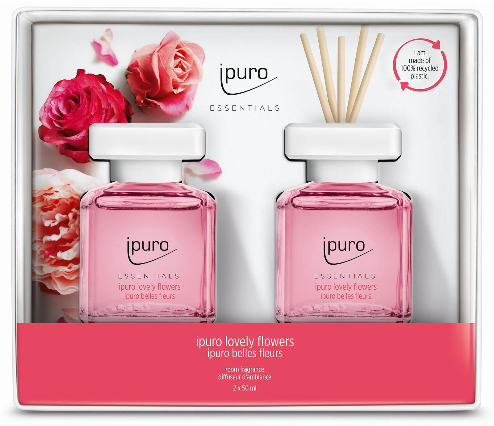 Entwickelt von ipuro, einem renommierten Hersteller von Raumdüften, bietet dieser Lovely Flowers Raumduft eine hochwertige Qualität und lang anhaltende Wirkung. Die zwei handlichen Flaschen zu je 50 ml lassen sich bequem verwenden und eignen sich perfekt für Zuhause, das Büro oder jeden anderen Raum, den du mit einem frischen Duft erfüllen möchtest.