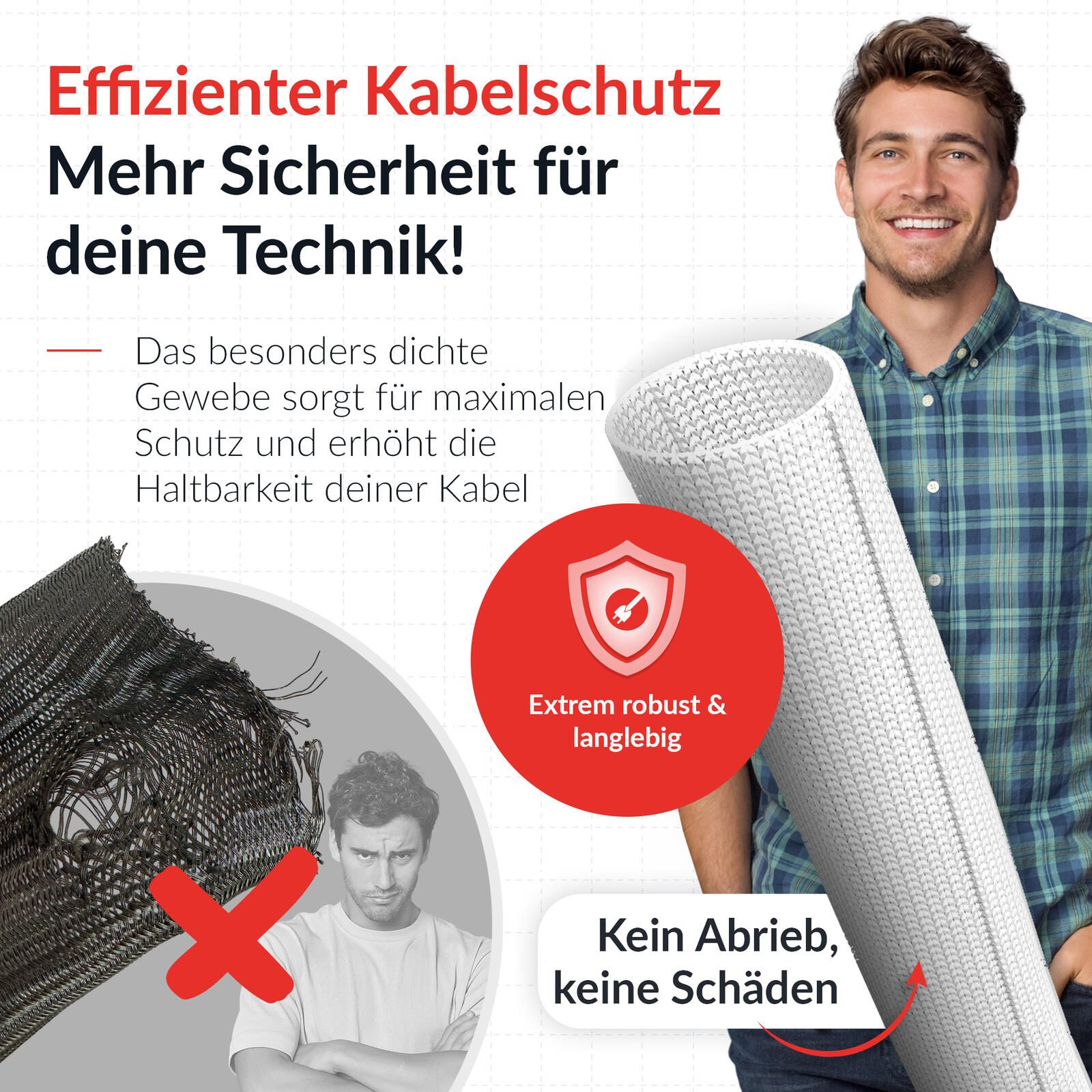 - INDIVIDUELL ANPASSBAR: Durch einfache Einschnitte können Kabel an jeder beliebigen Stelle ein- und ausgeführt werden - ideal für komplexe Verkabelungen ohne den Kabelschlauch komplett zu unterbrechen.